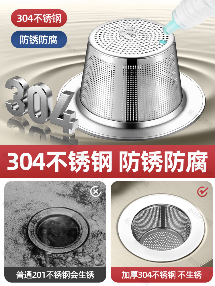 シンク漏れ防止栓、キッチンシンクフィルター、食器洗いシンク、304ステンレス製食器洗いゴミ箱、アップグレードモデル