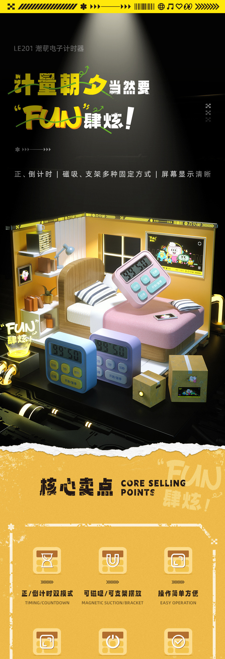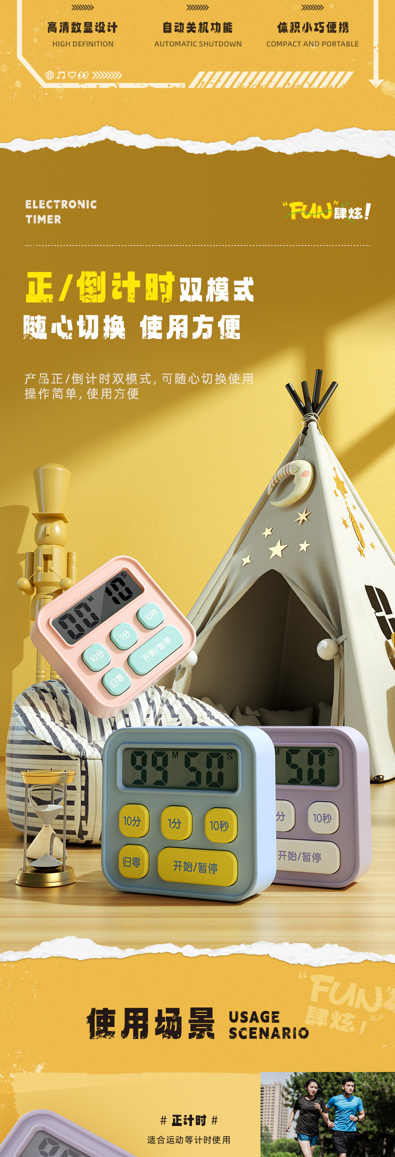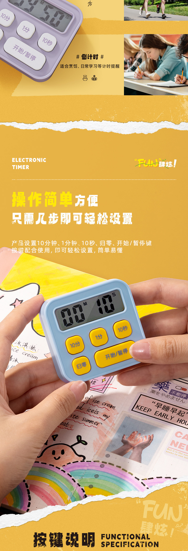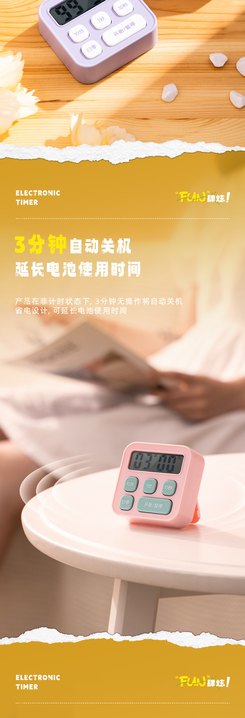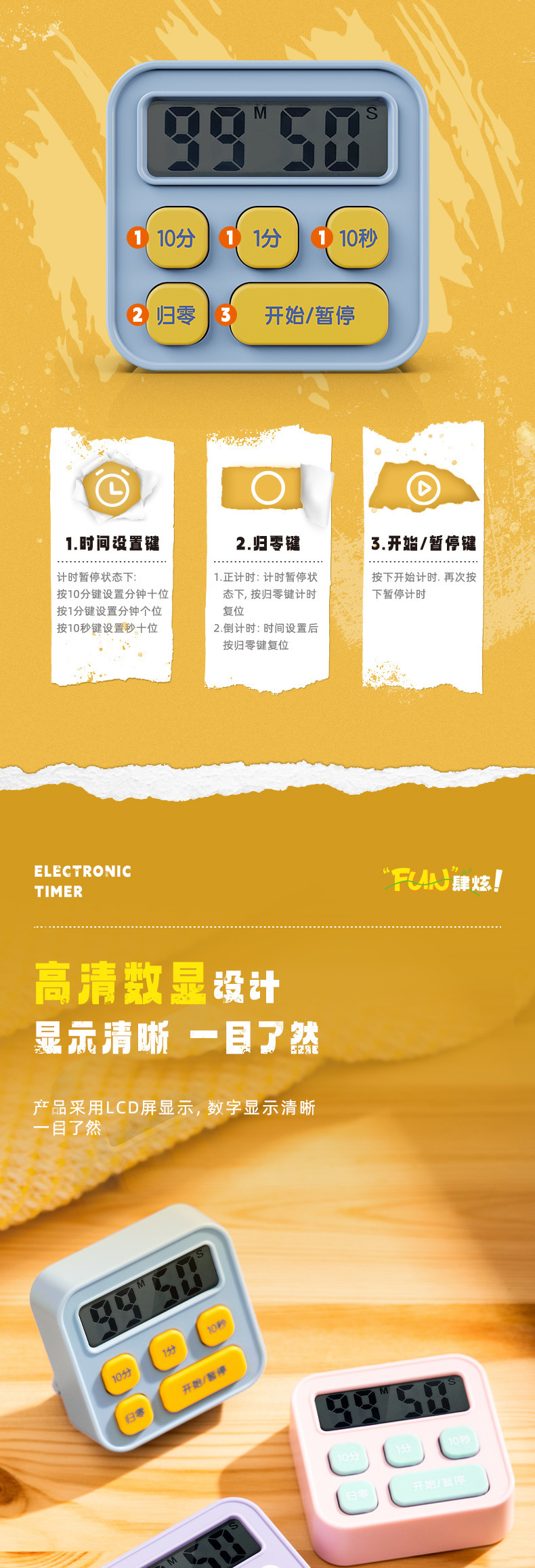 得力LE201电子计时器 学习小学生自律儿童学霸厨房提醒器混色批发