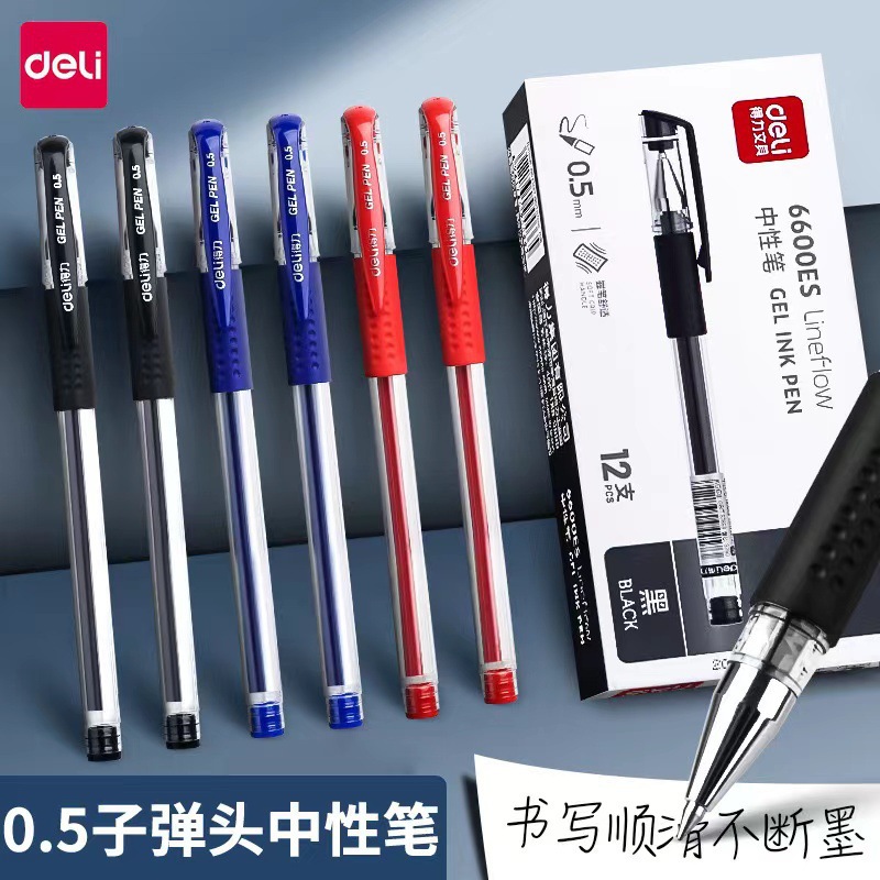 デリ 6600es ゲルペンリフィル黒赤青インクブルー 0.5 弾丸黒ペン学生オフィスペン