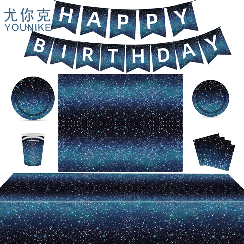 ホットスポット星空銀河テーマ使い捨て紙食器新年誕生日ホリデーパーティー装飾紙食器