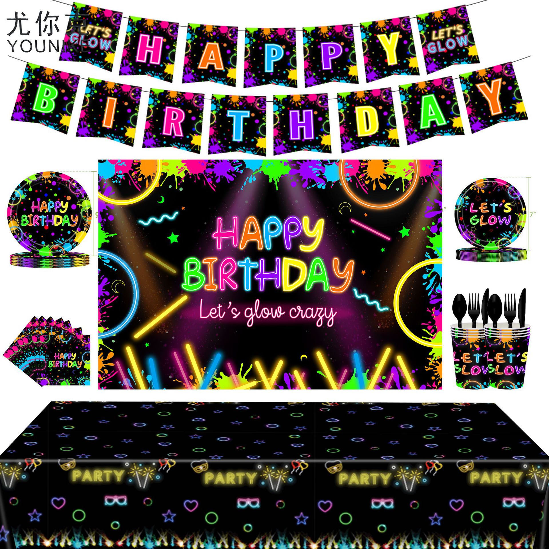 新品発光テーマパーティー食器let's glow诞生日パーティーネオン舞踏会パーティー用品ペーパートレイ