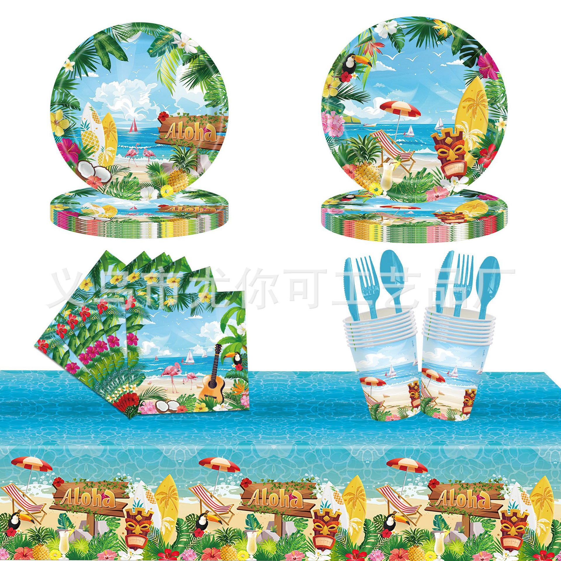 新しいハワイのテーマパーティー食器夏プール誕生日パーティー使い捨て紙皿紙コップテーブルクロス