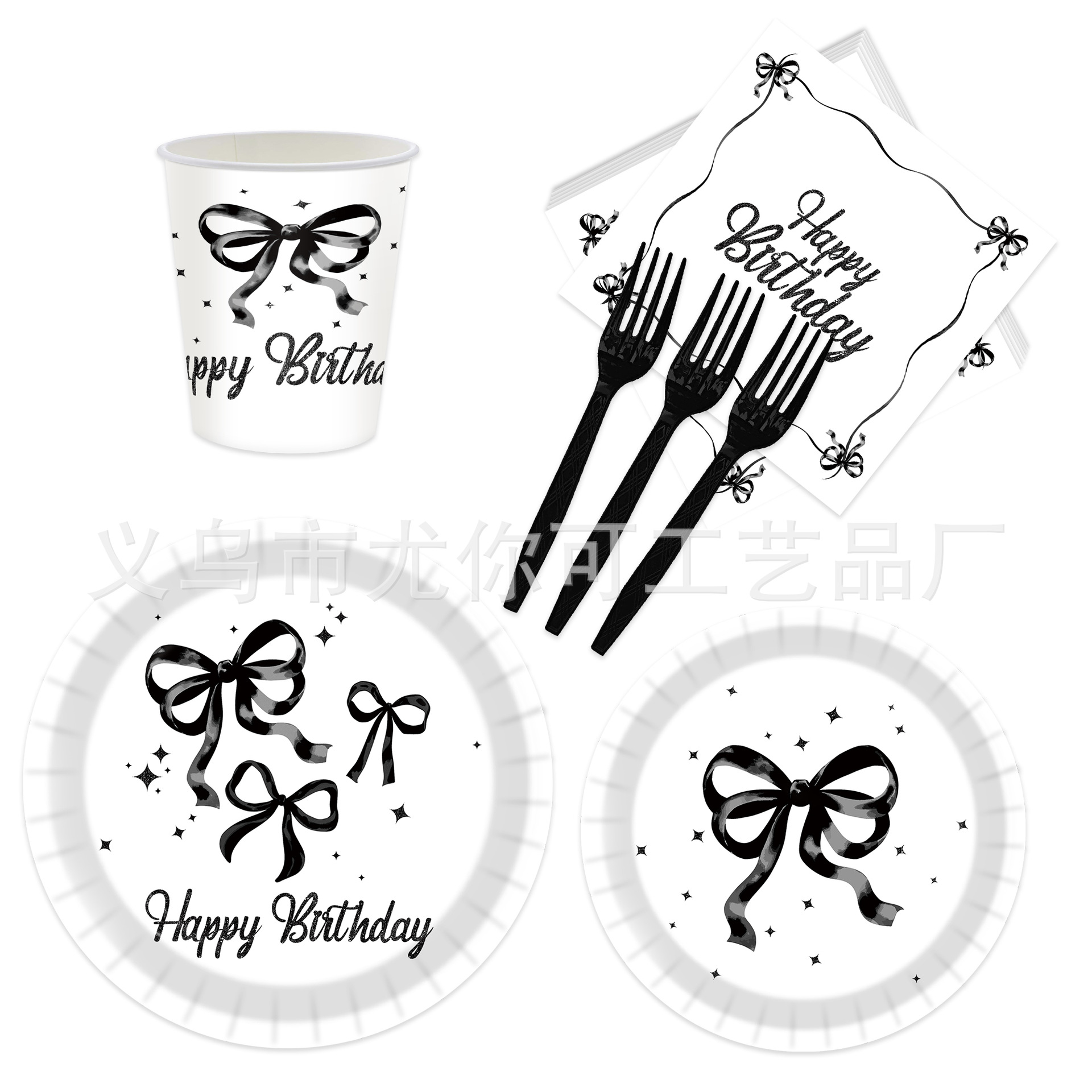 国境を越えた新しい黒蝶ネクタイのテーマパーティー食器セット使い捨て紙皿紙コップティッシュテーブルクロス