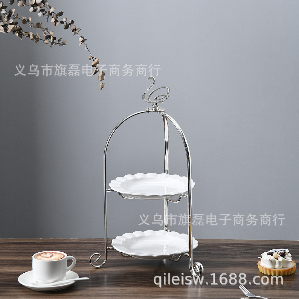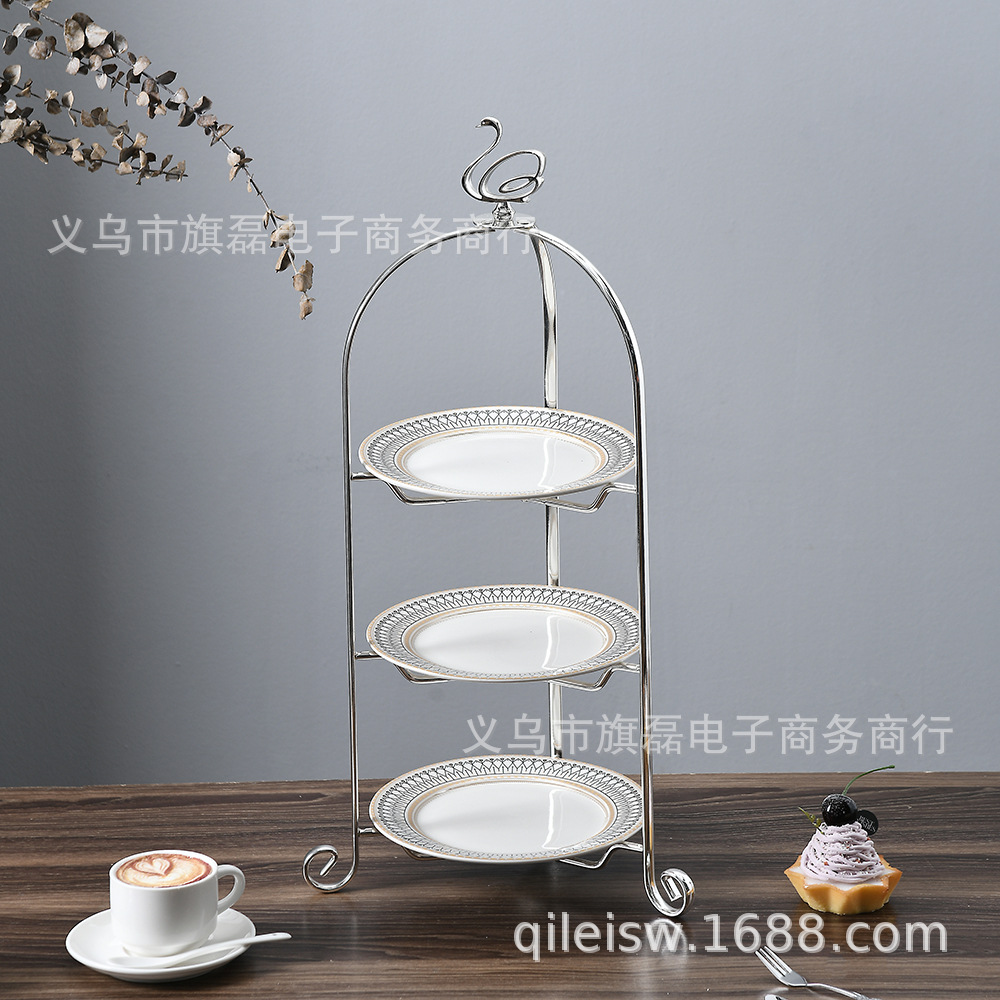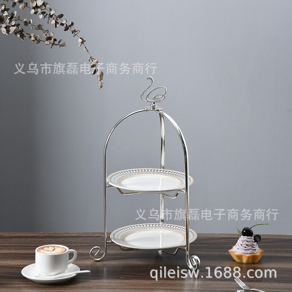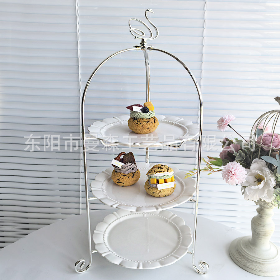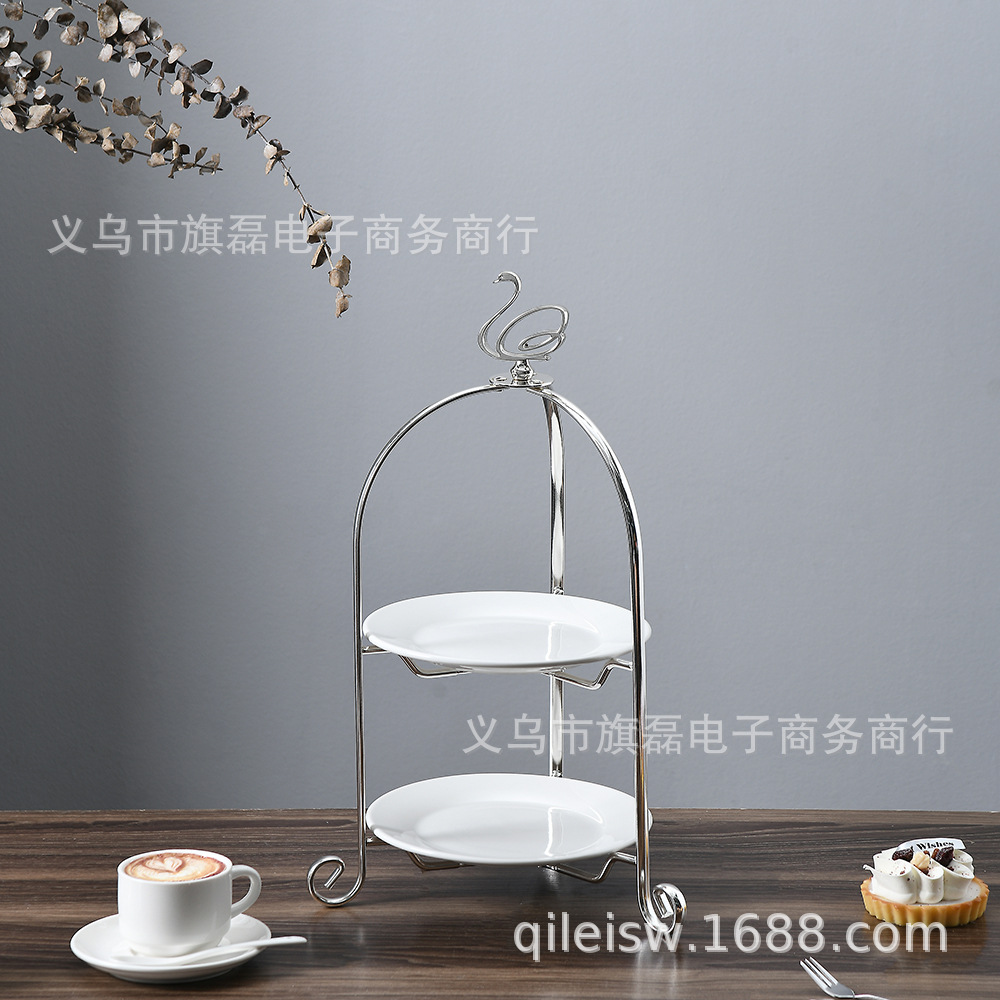 欧式多层甜品台天鹅两层三层蛋糕盘餐厅家居点心水果下午茶托盘