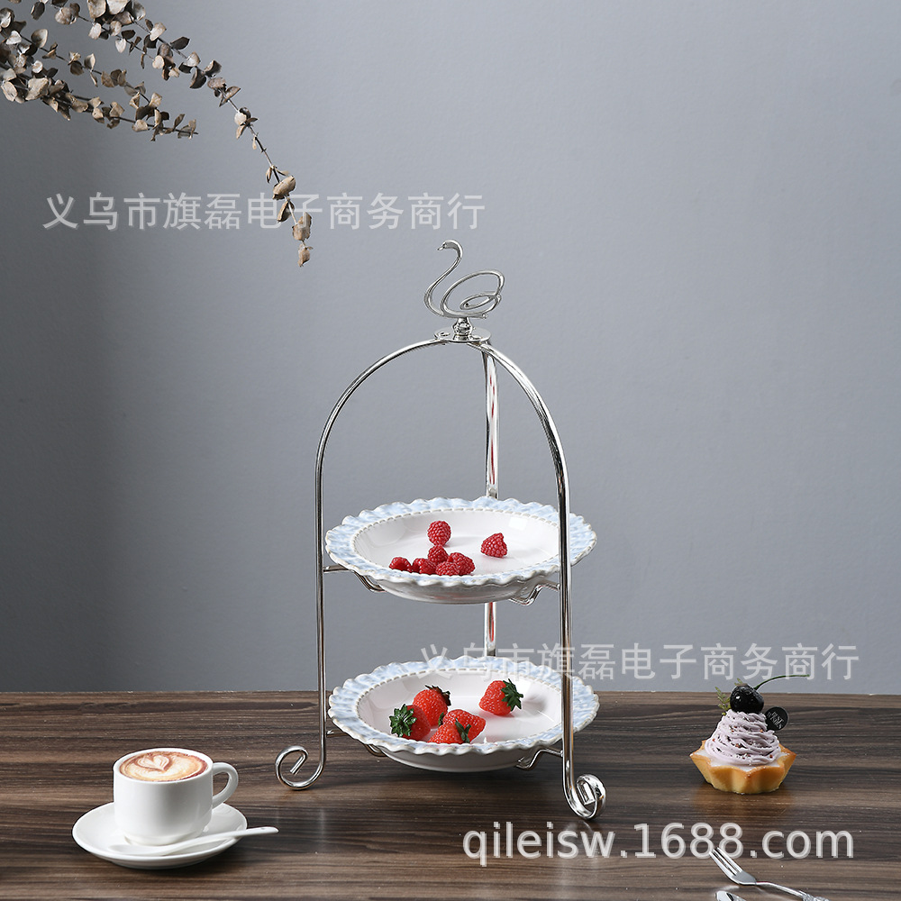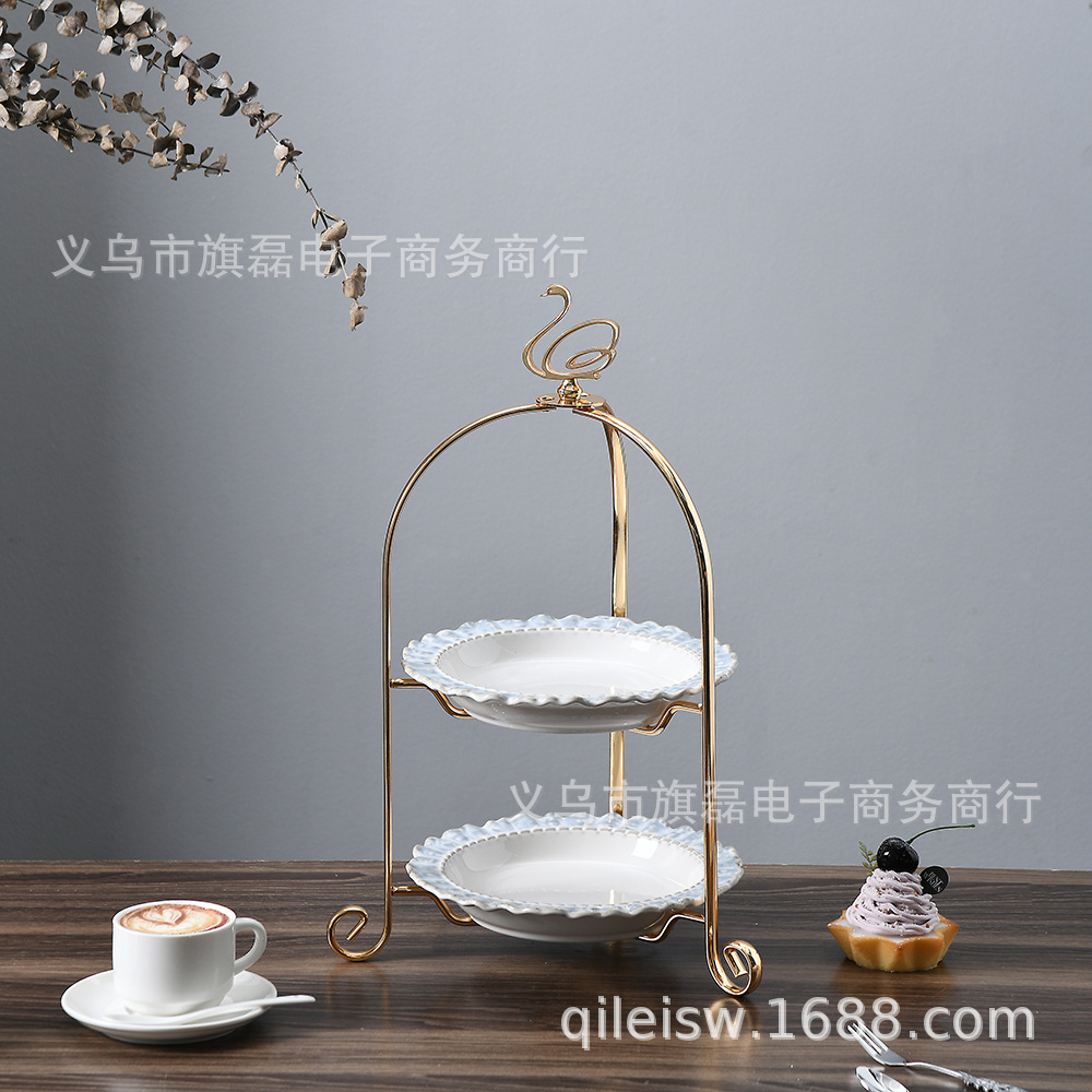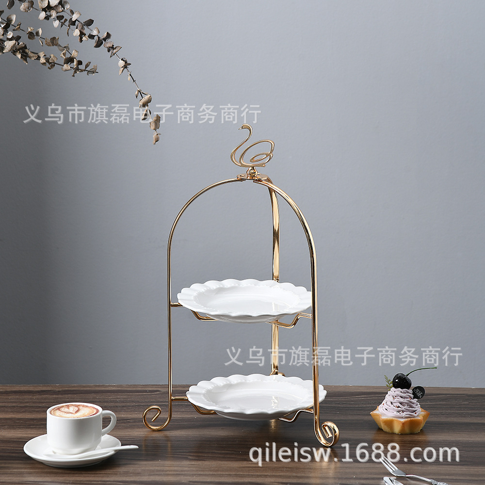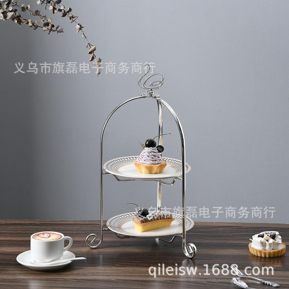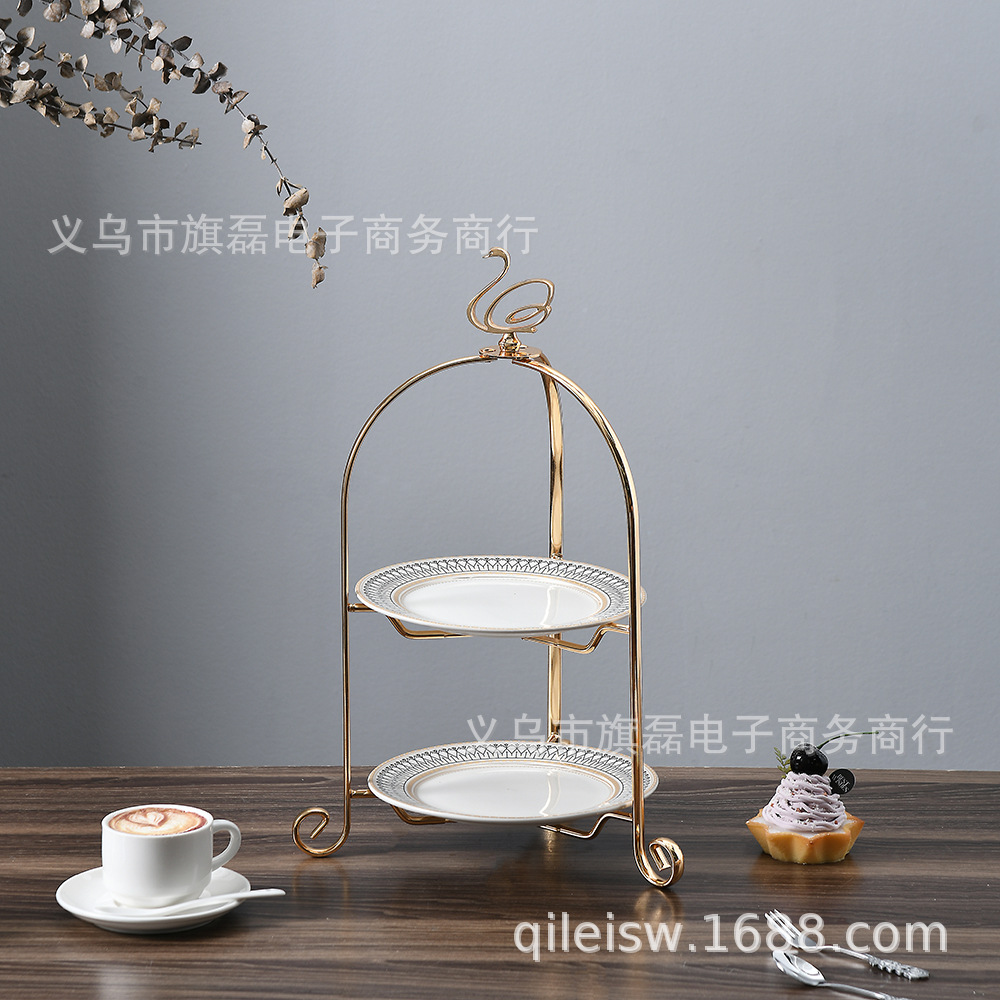 欧式多层甜品台天鹅两层三层蛋糕盘餐厅家居点心水果下午茶托盘