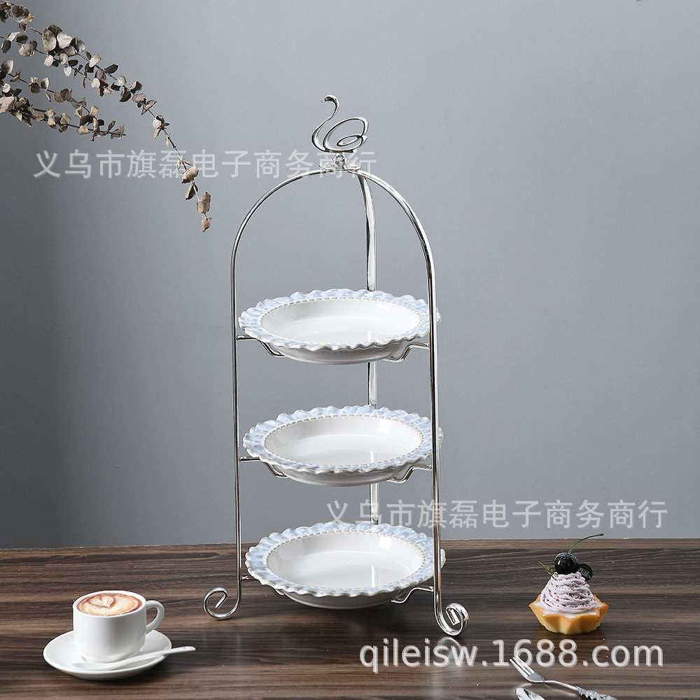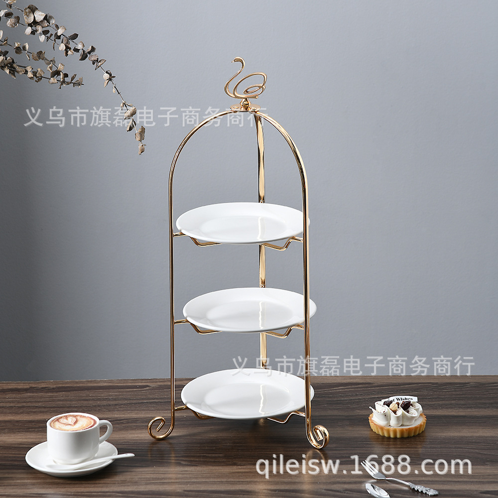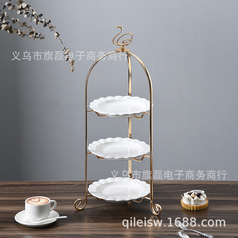 下午茶甜品台展示架点心水果盘蛋糕架三层托盘欧式陶瓷蛋糕甜品架