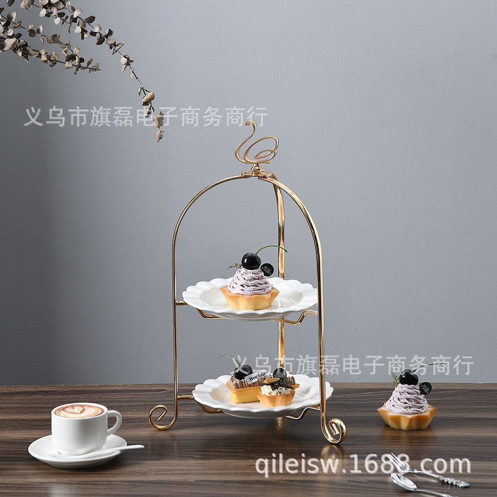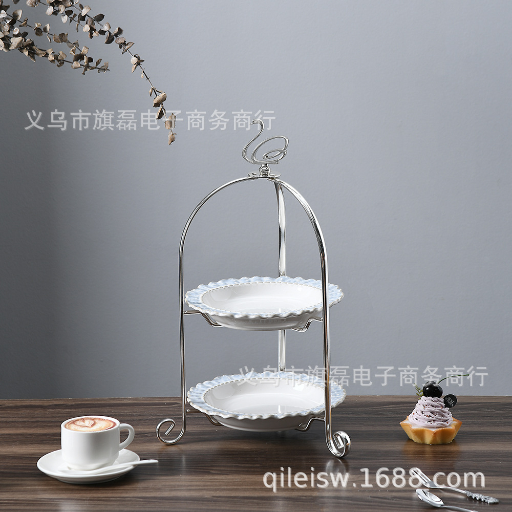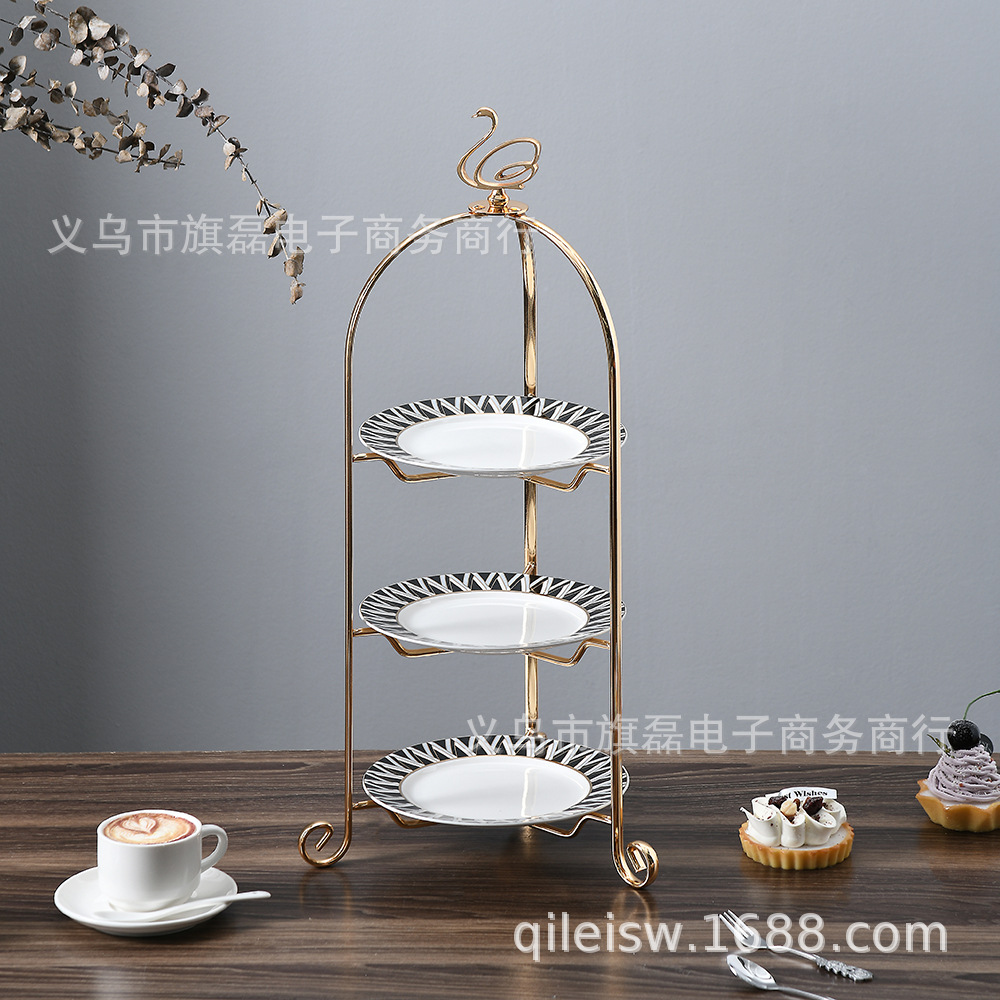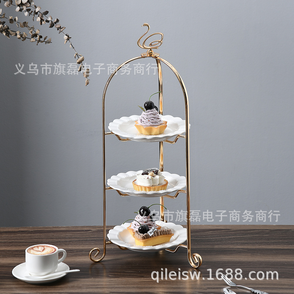 下午茶甜品台展示架点心水果盘蛋糕架三层托盘欧式陶瓷蛋糕甜品架