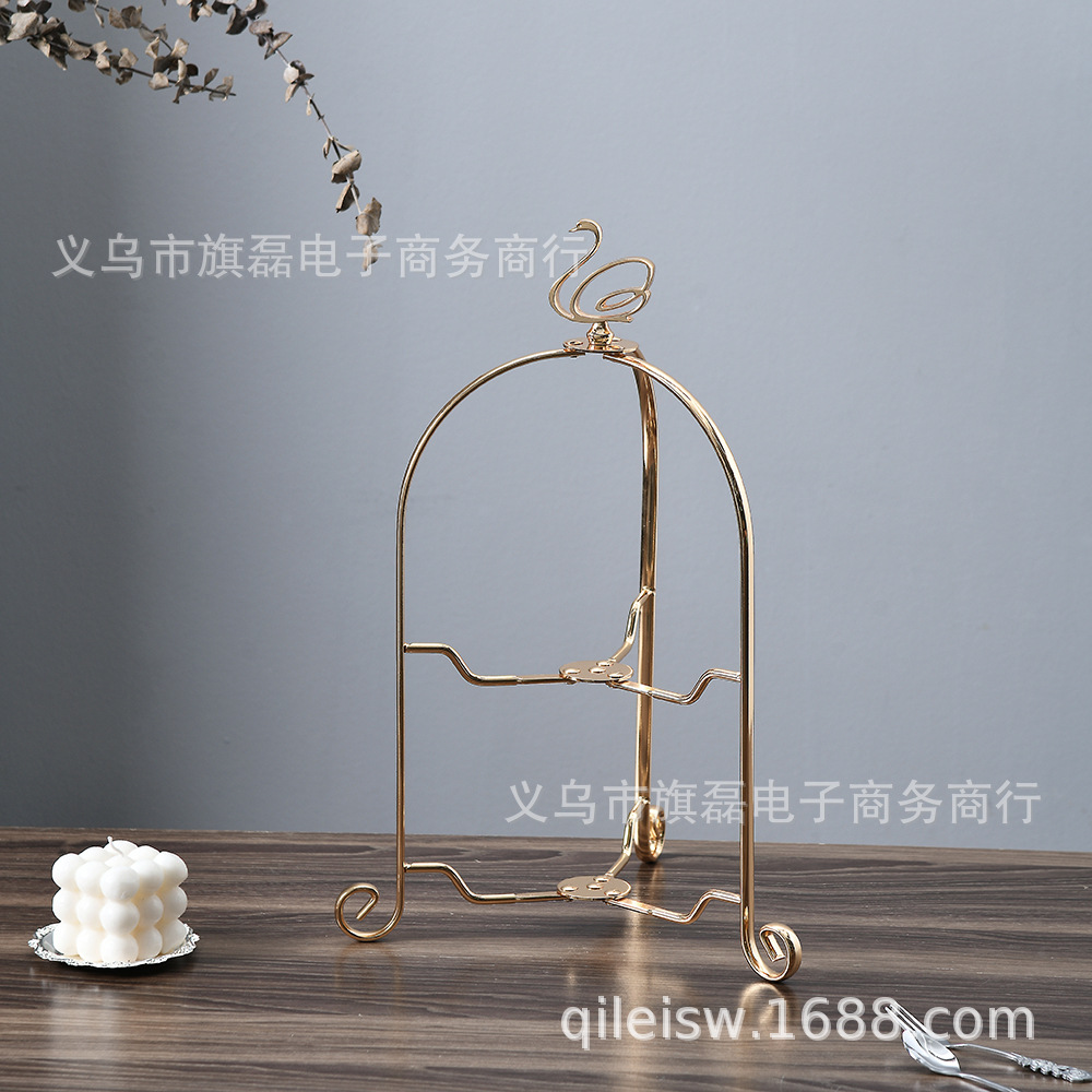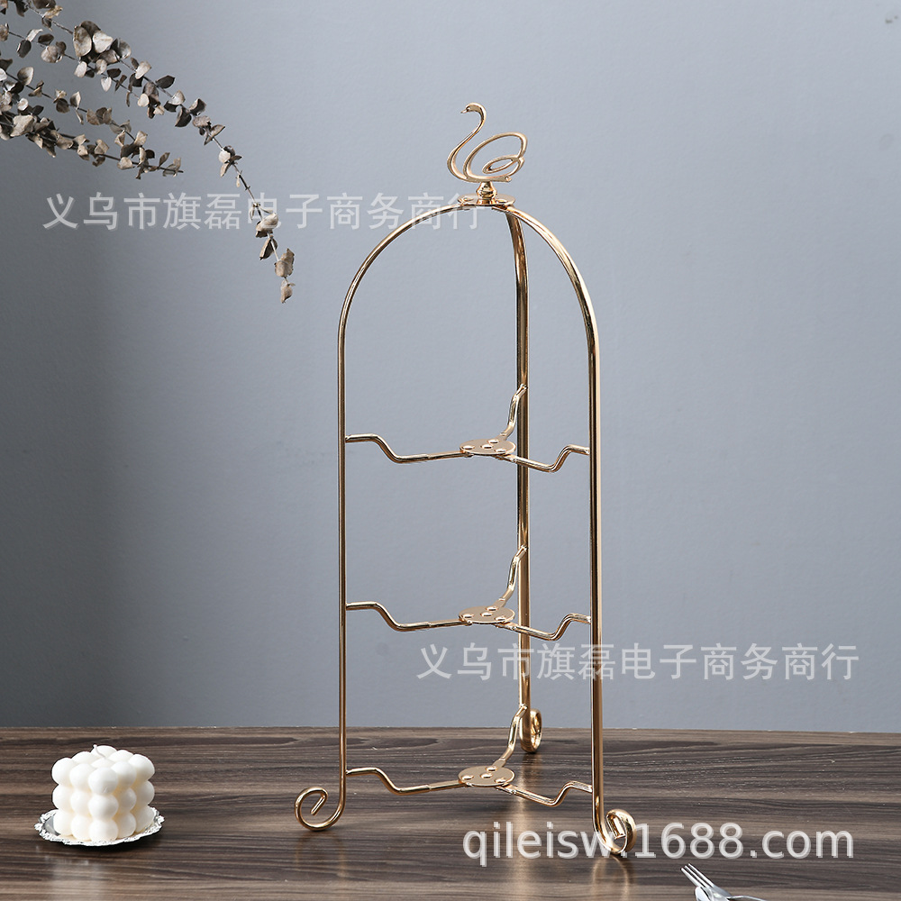 ヨーロッパ式結婚祝い鉄芸折り畳み三層ケーキ棚午後茶菓子棚デザート台展示棚茶休憩台