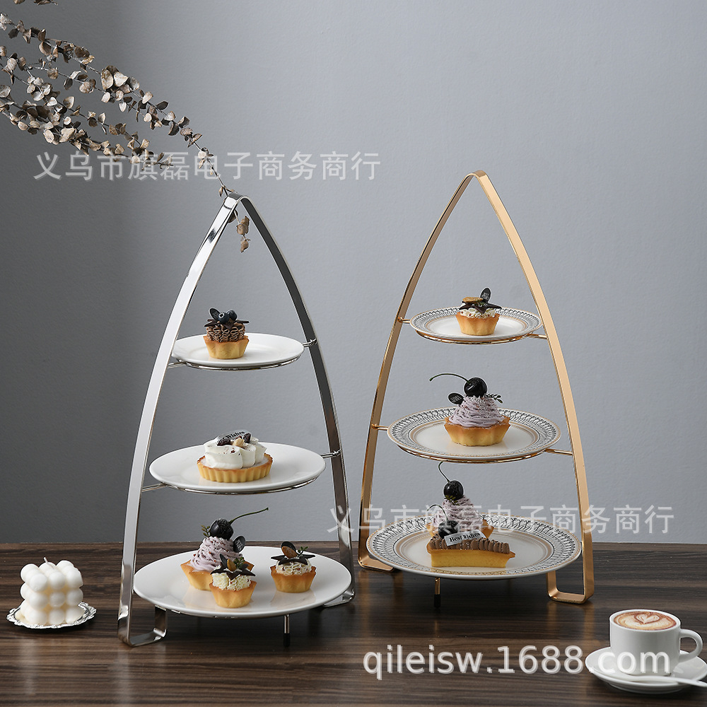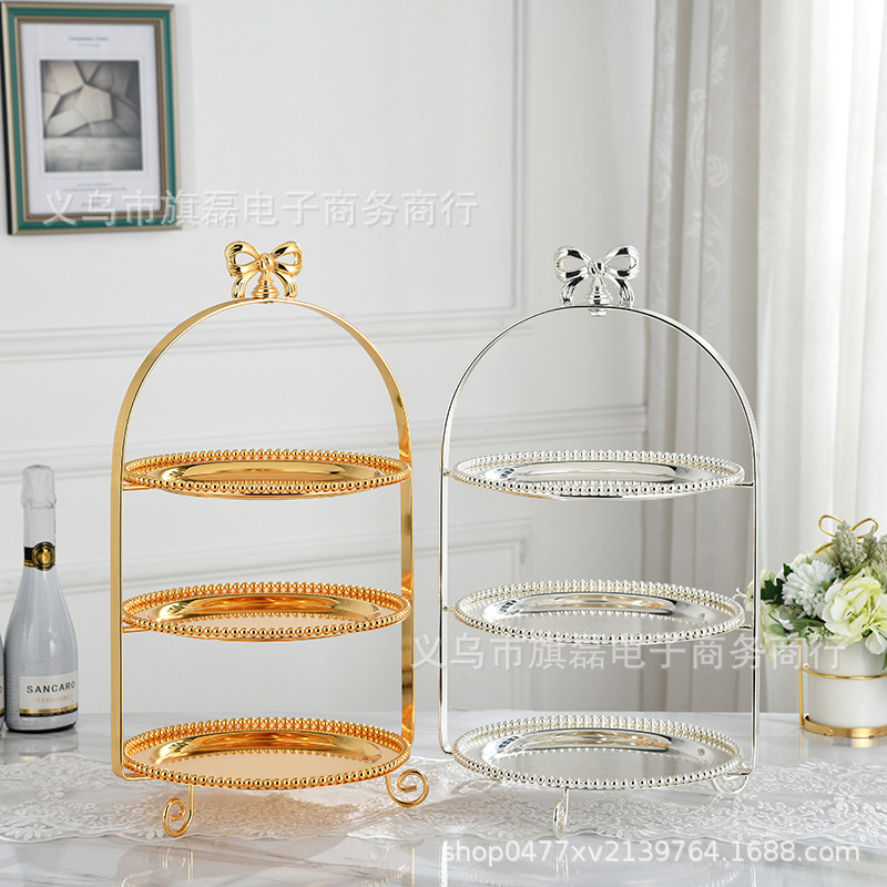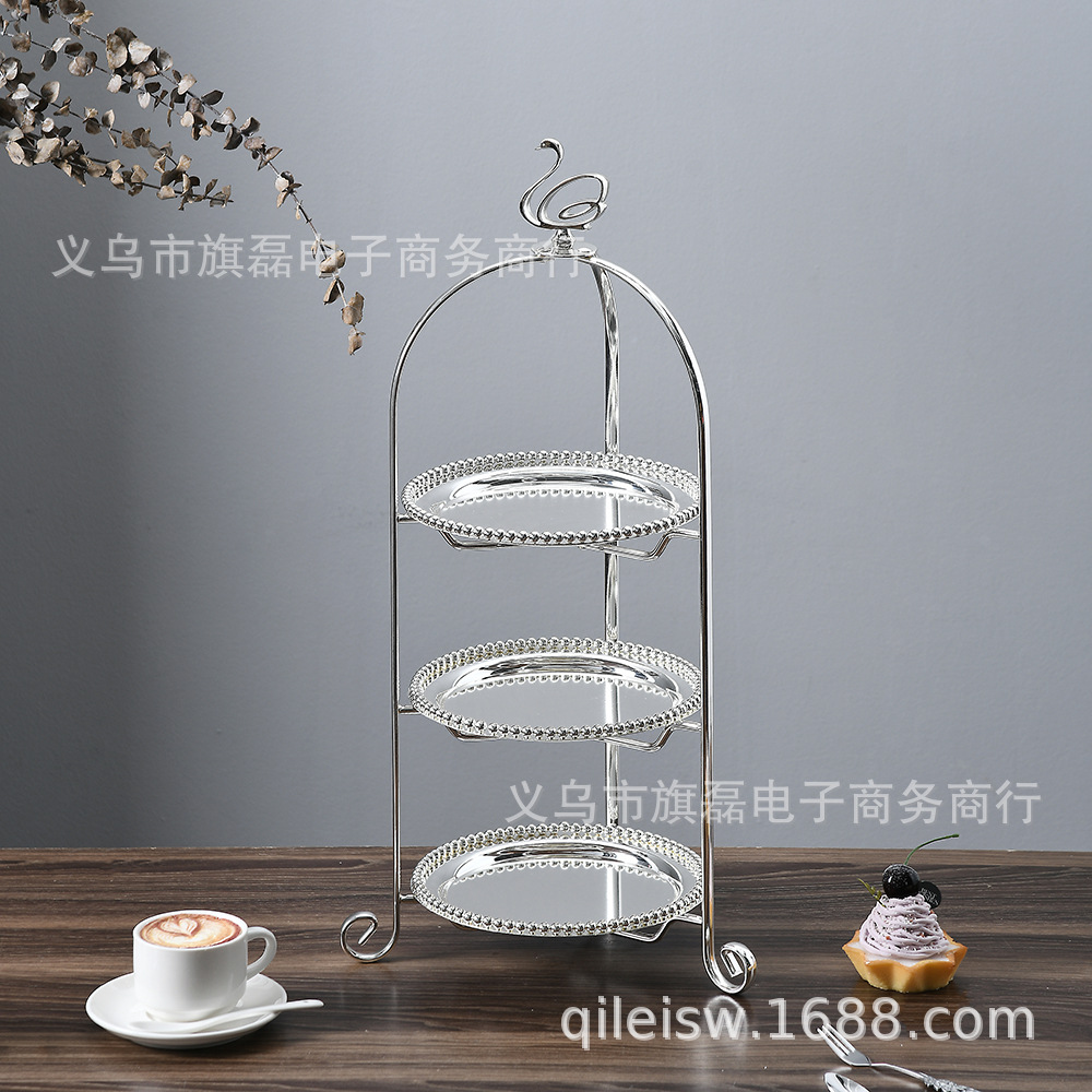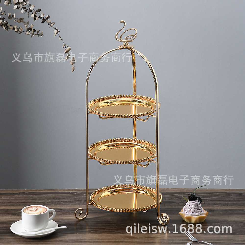 欧式轻奢下午茶点心架酒店餐厅三层蛋糕架甜品台展示架不锈钢果盘