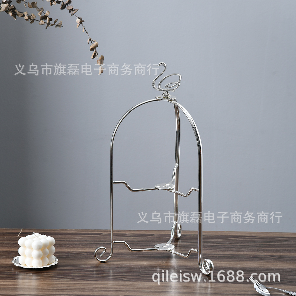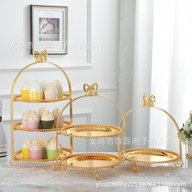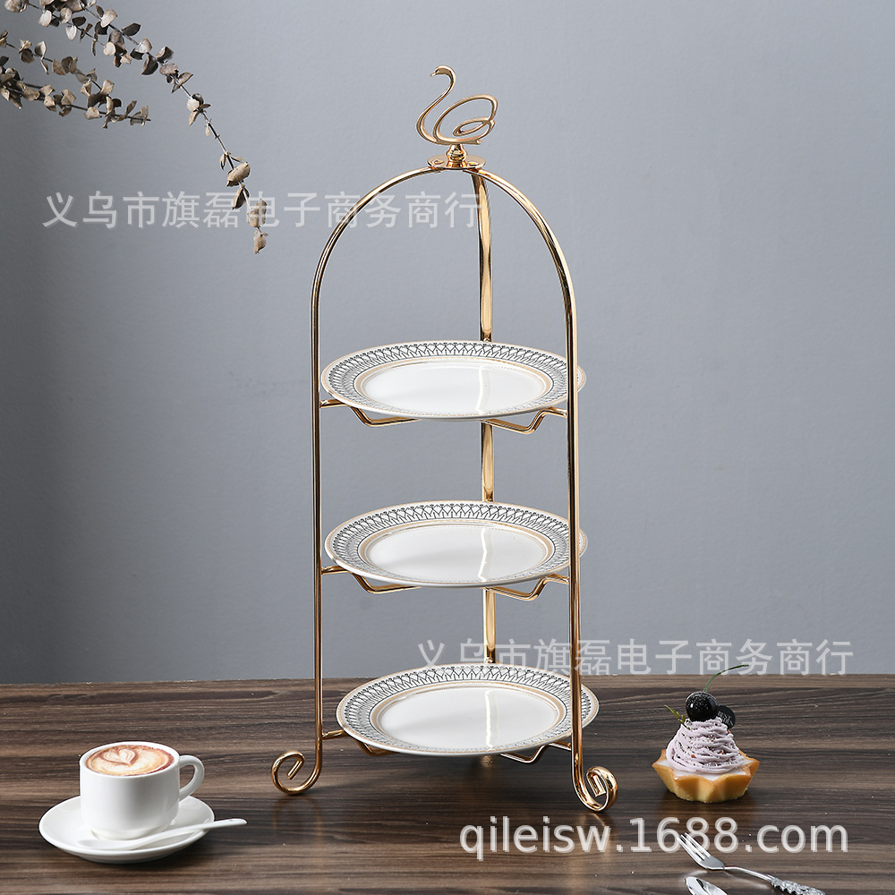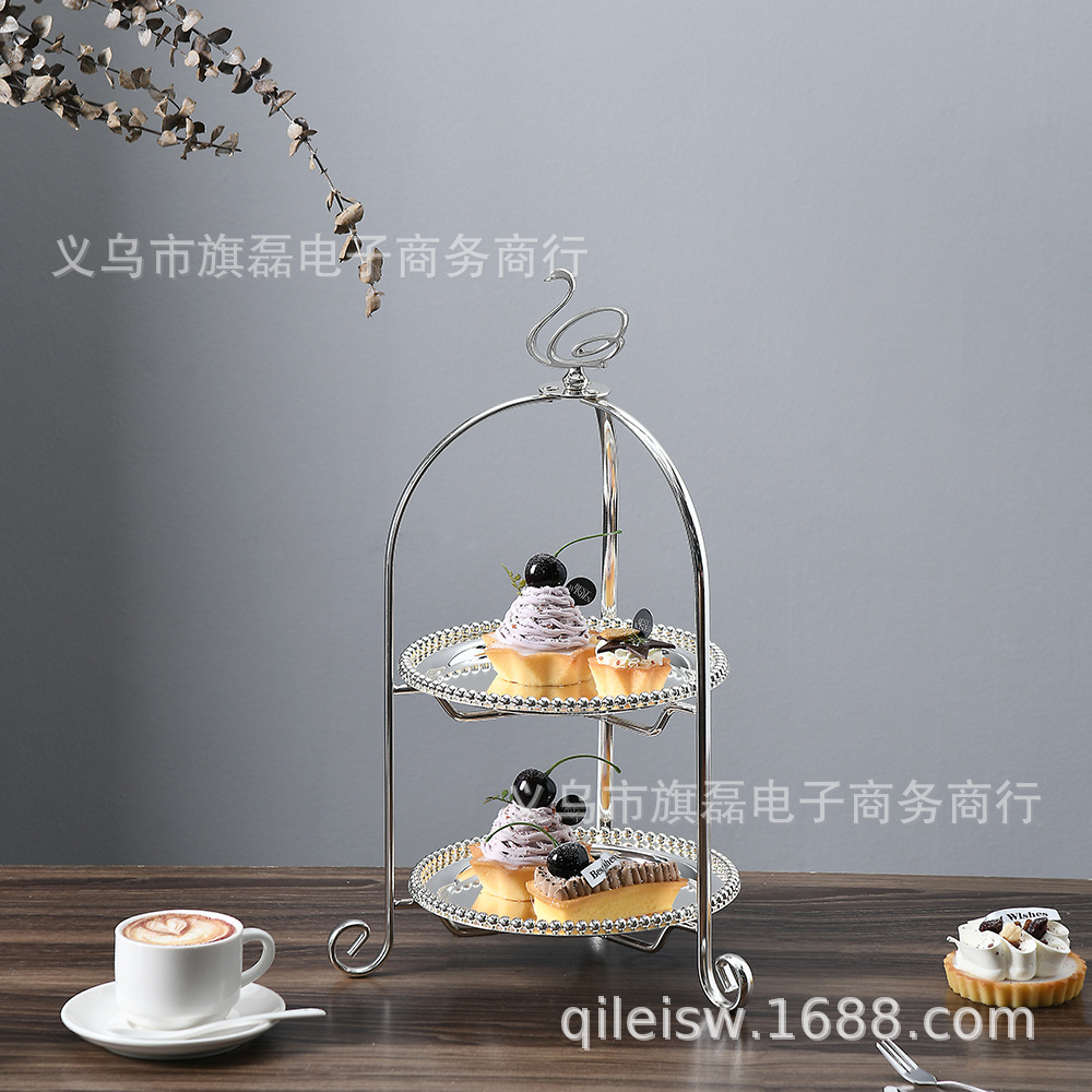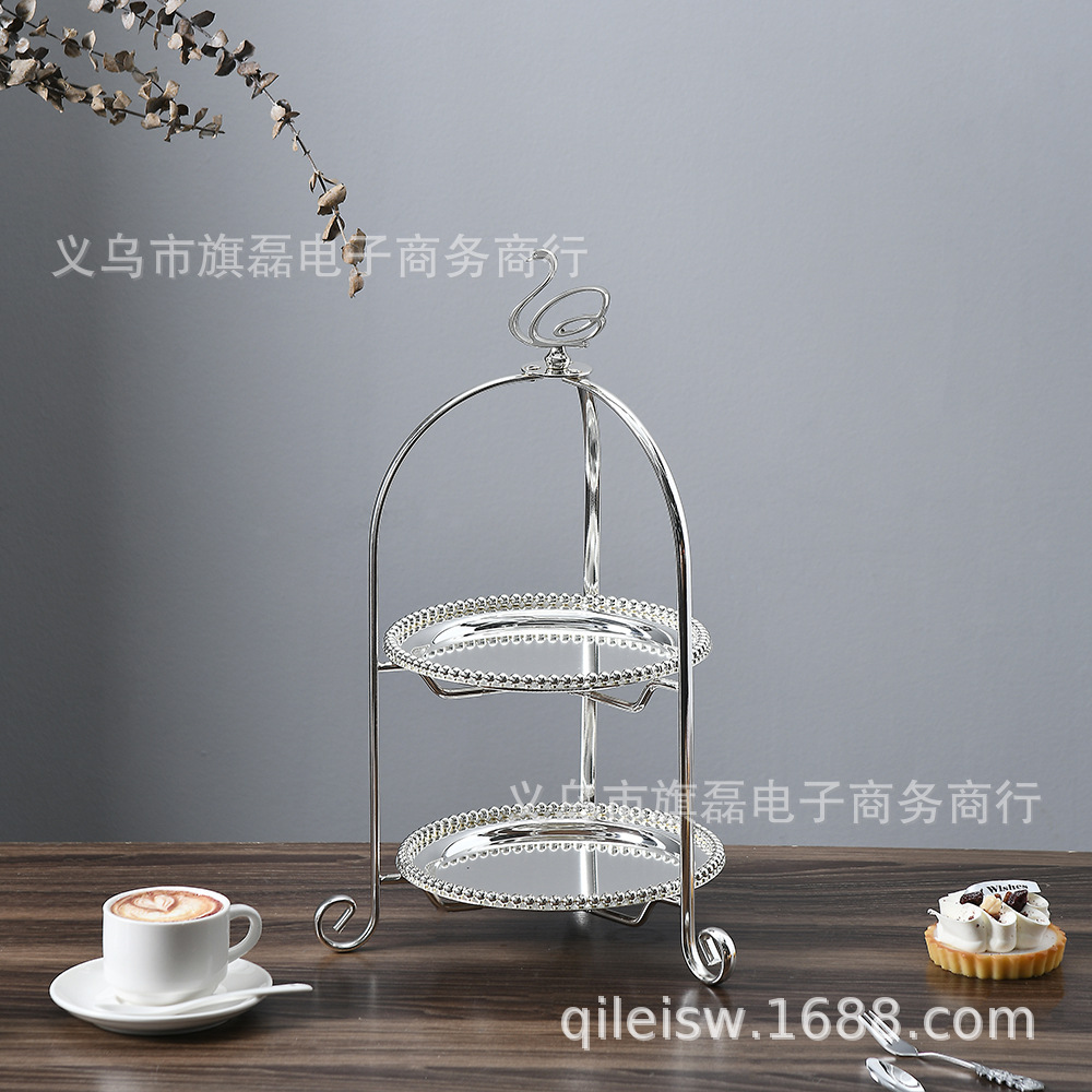 欧式轻奢下午茶点心架酒店餐厅三层蛋糕架甜品台展示架不锈钢果盘