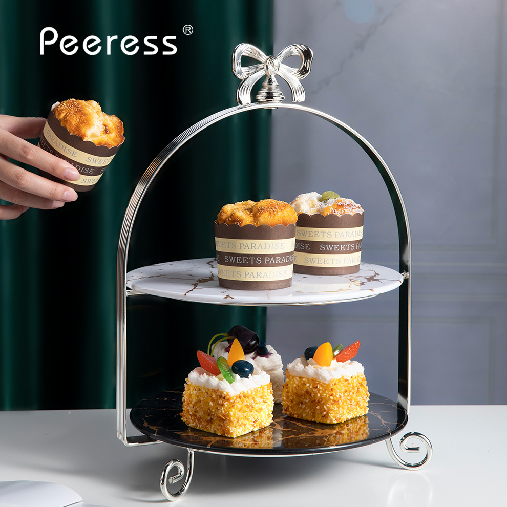 ヨーロッパ風のシンプルな金の銀色の中華料理の午後のお茶のお菓子棚のお菓子はケーキの皿を挟みます。