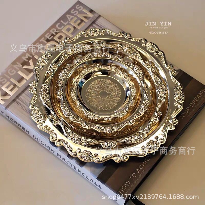韓国式ステンレス円盤テーブル収納棚焼肉店鍋料理皿棚金色デザートトレーケーキ皿