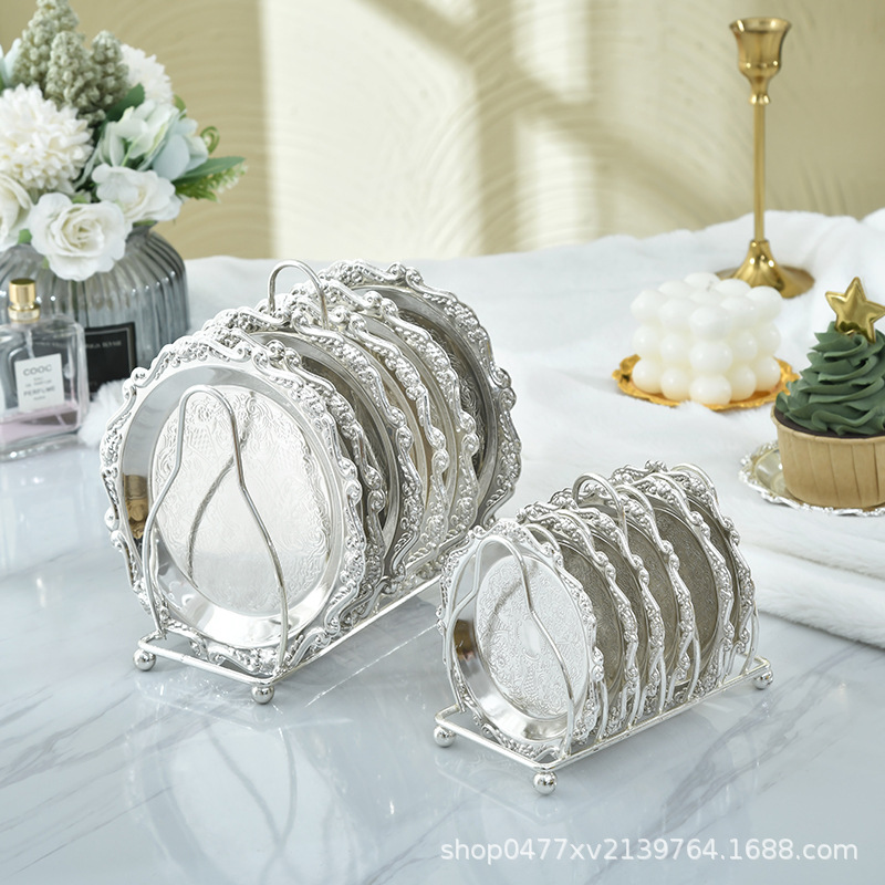 イン金属彫刻ティーコースター小皿スナックケーキプレートヨーロッパのレトロな香りのキャンドルジュエリー収納プレート