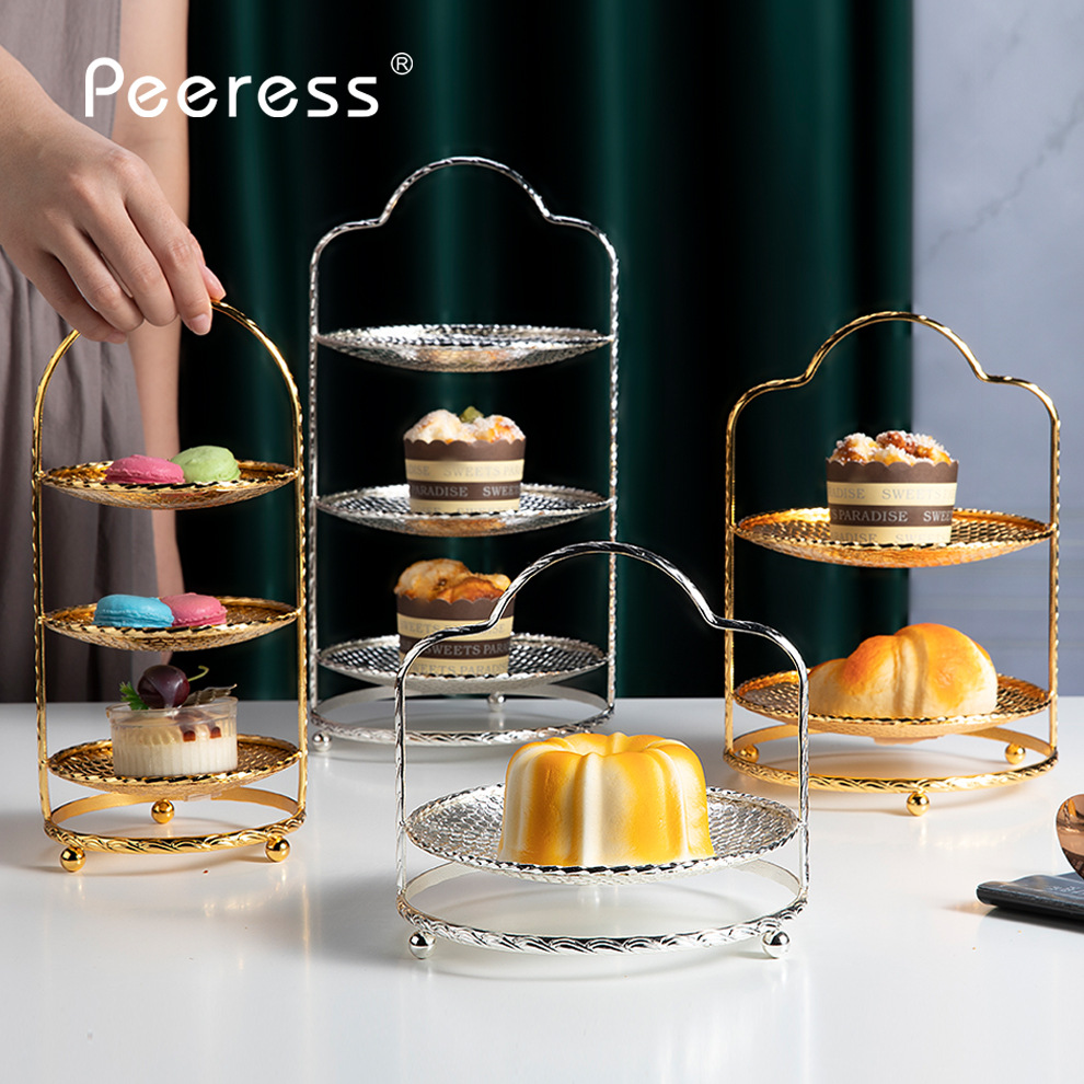 ヨーロピアンスタイルの多層デザートテーブルケーキスタンドアフタヌーンティーゴールデンデザートプレート三層ディスプレイスタンドコールドミールティーブレイクフルーツプレート