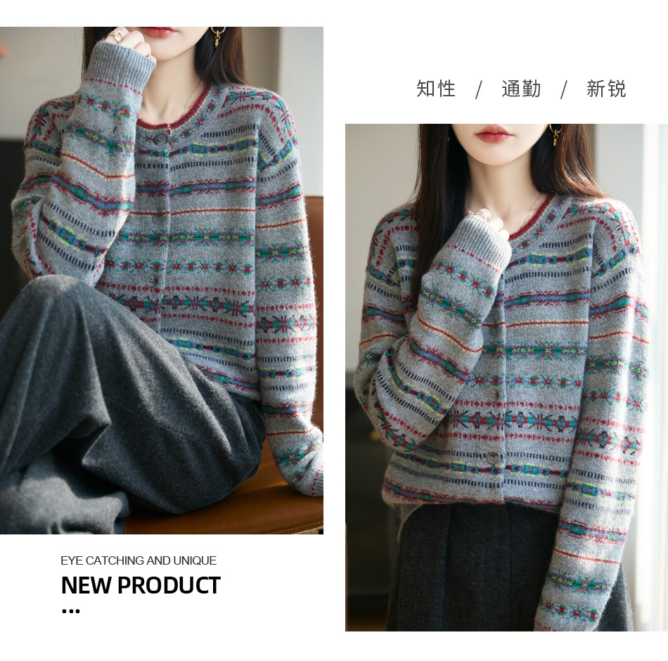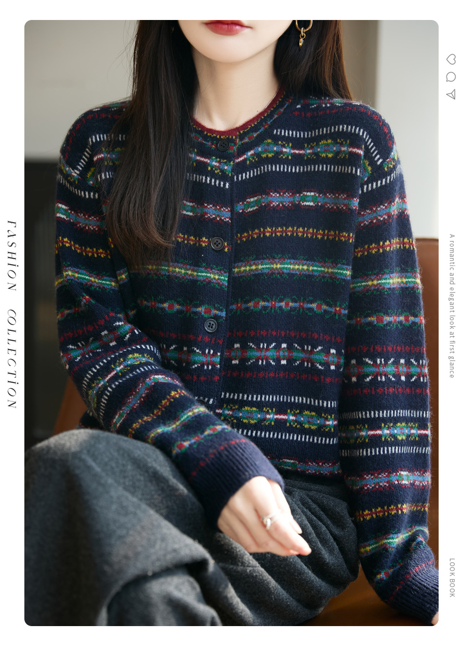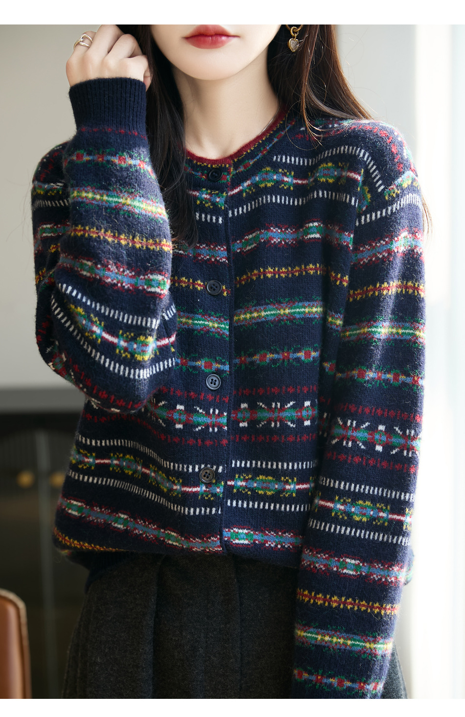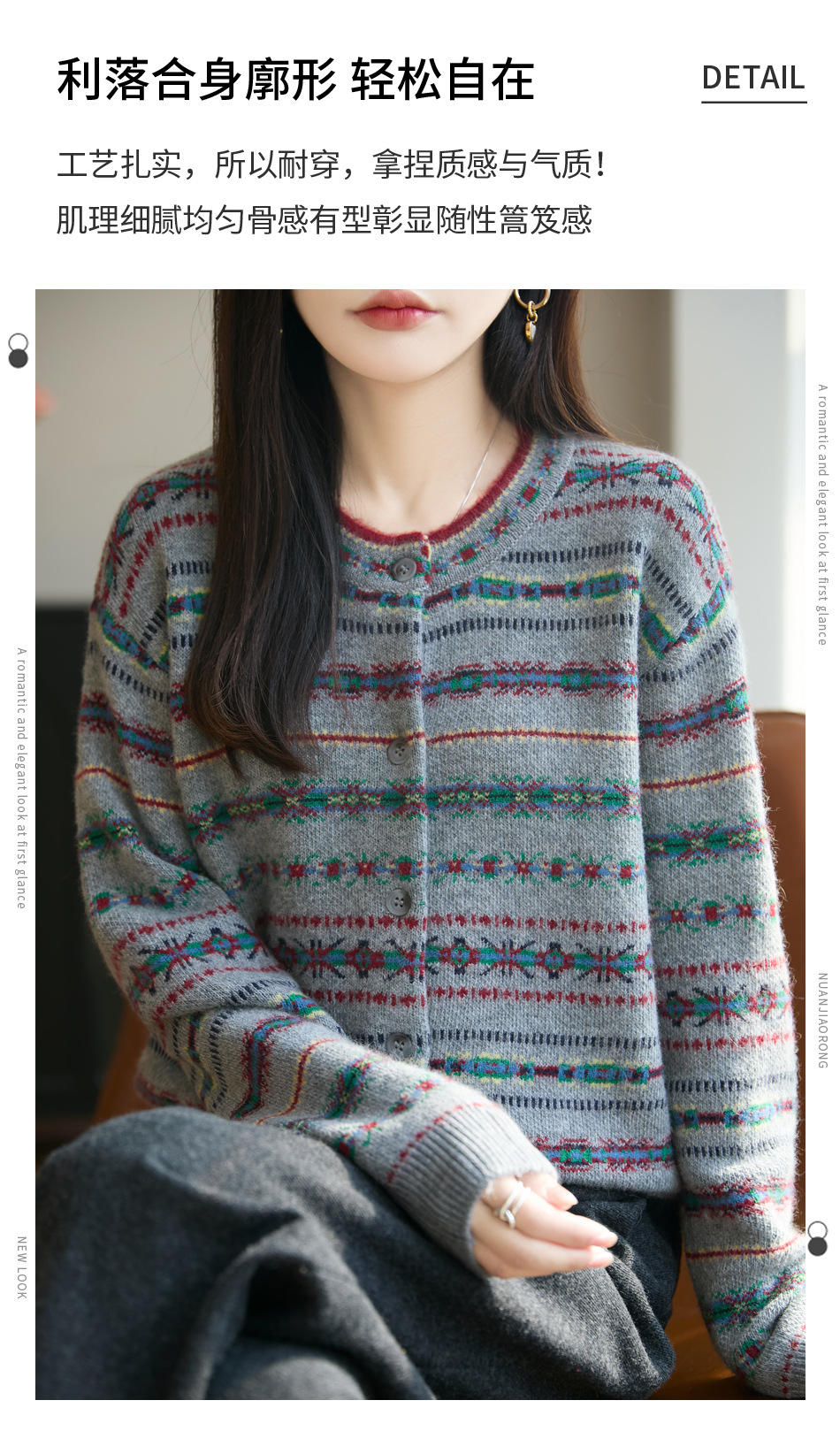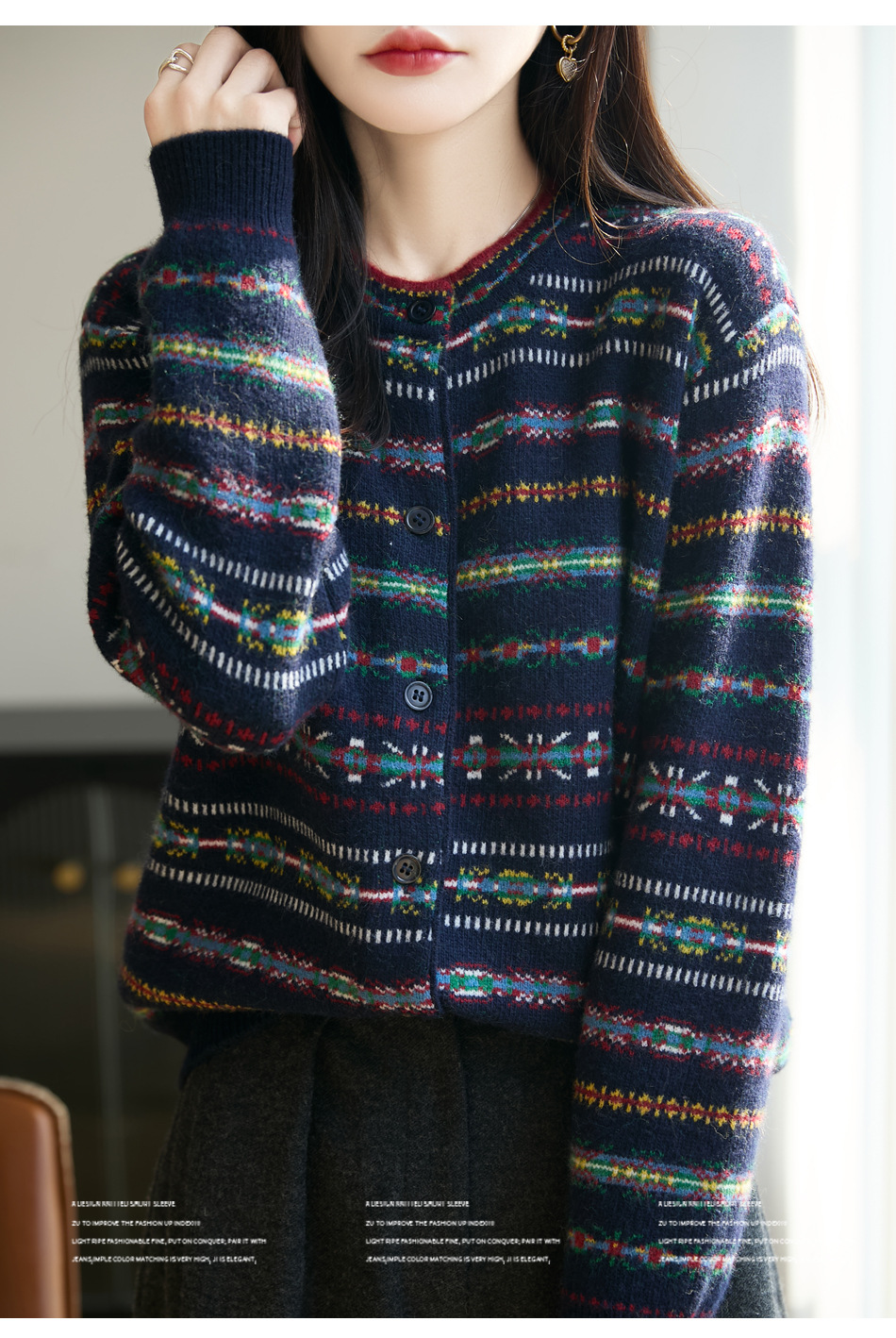 复古提花彩色开衫女秋冬内搭文艺 民族风多色针织外套慵懒百搭