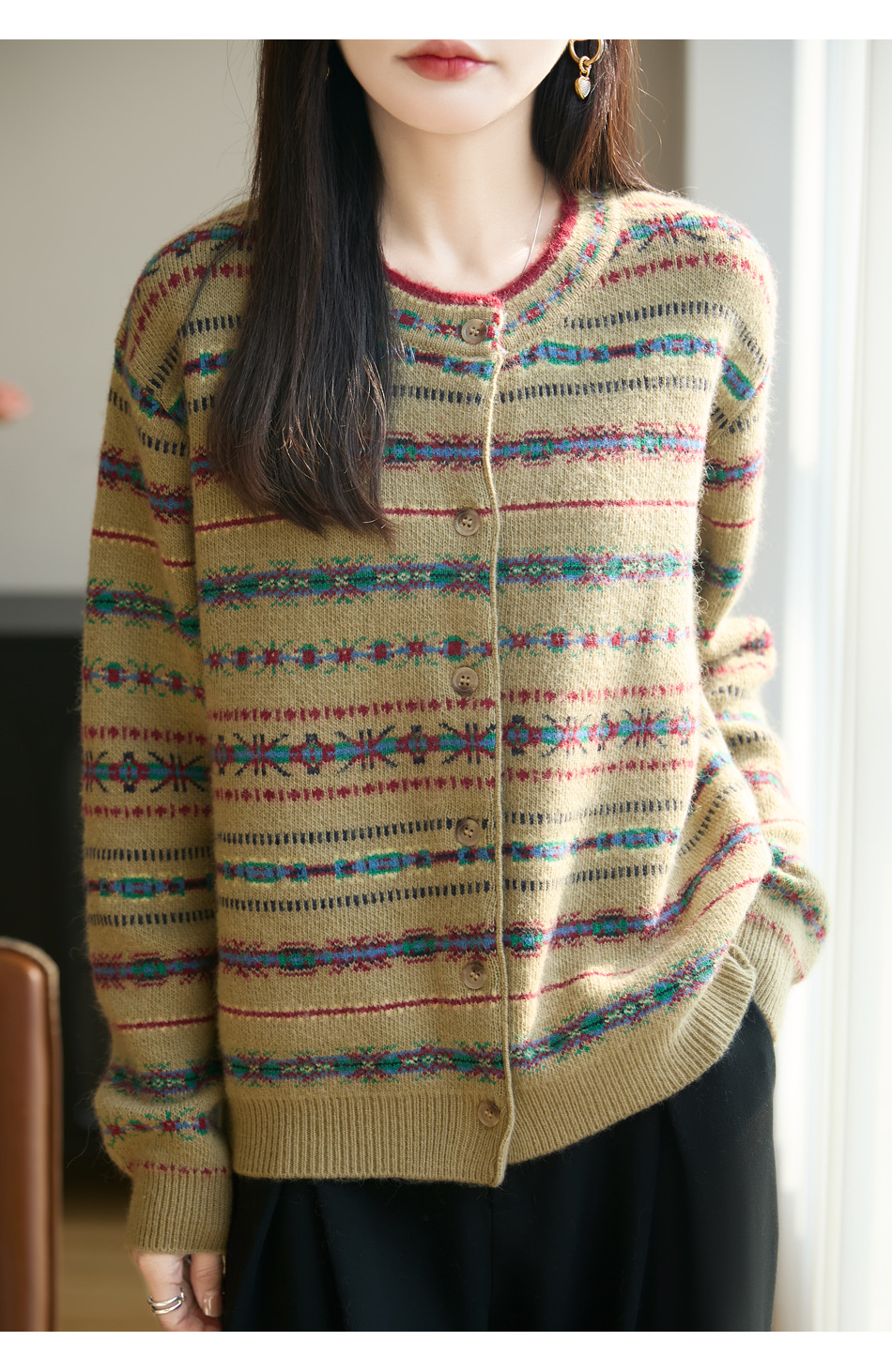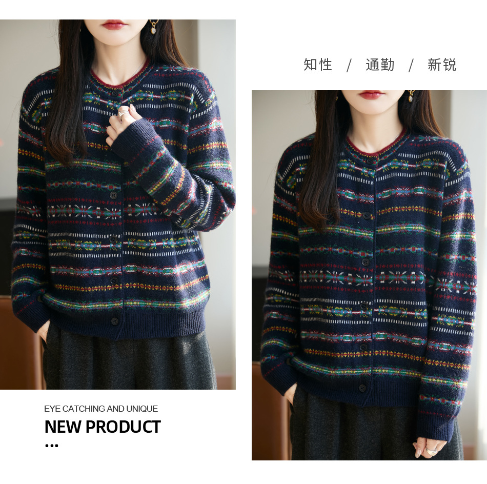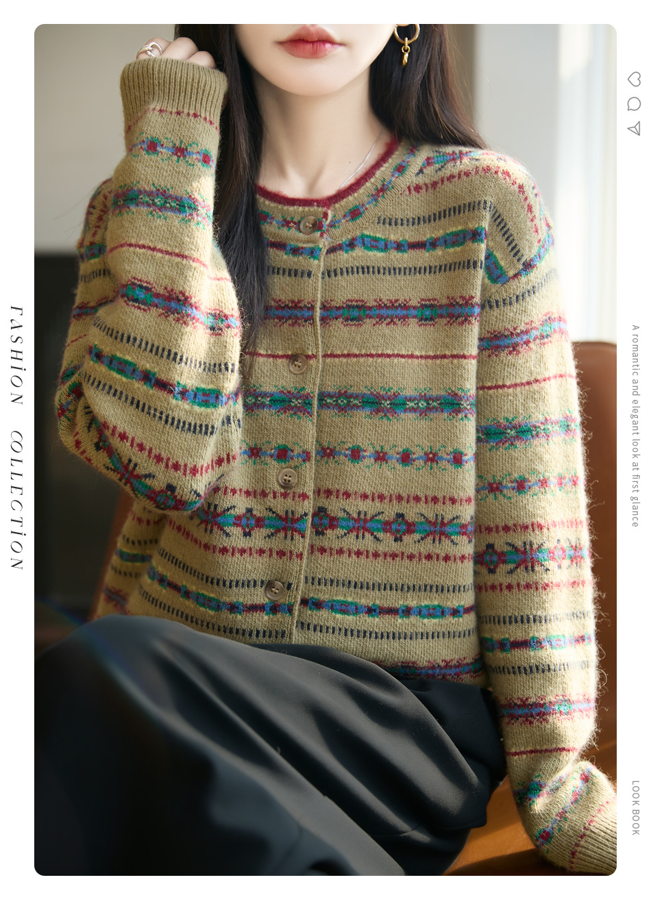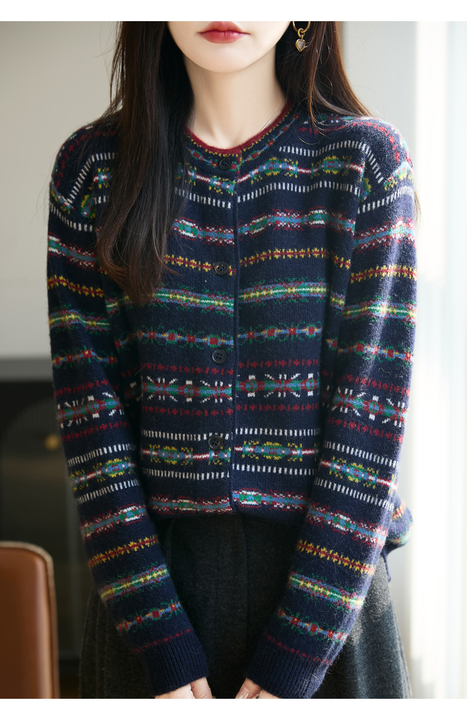 复古提花彩色开衫女秋冬内搭文艺 民族风多色针织外套慵懒百搭