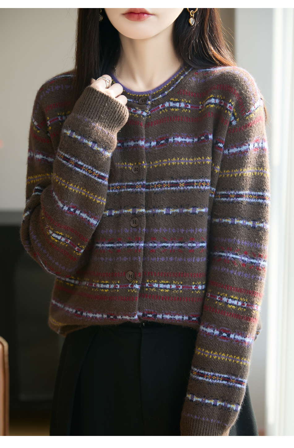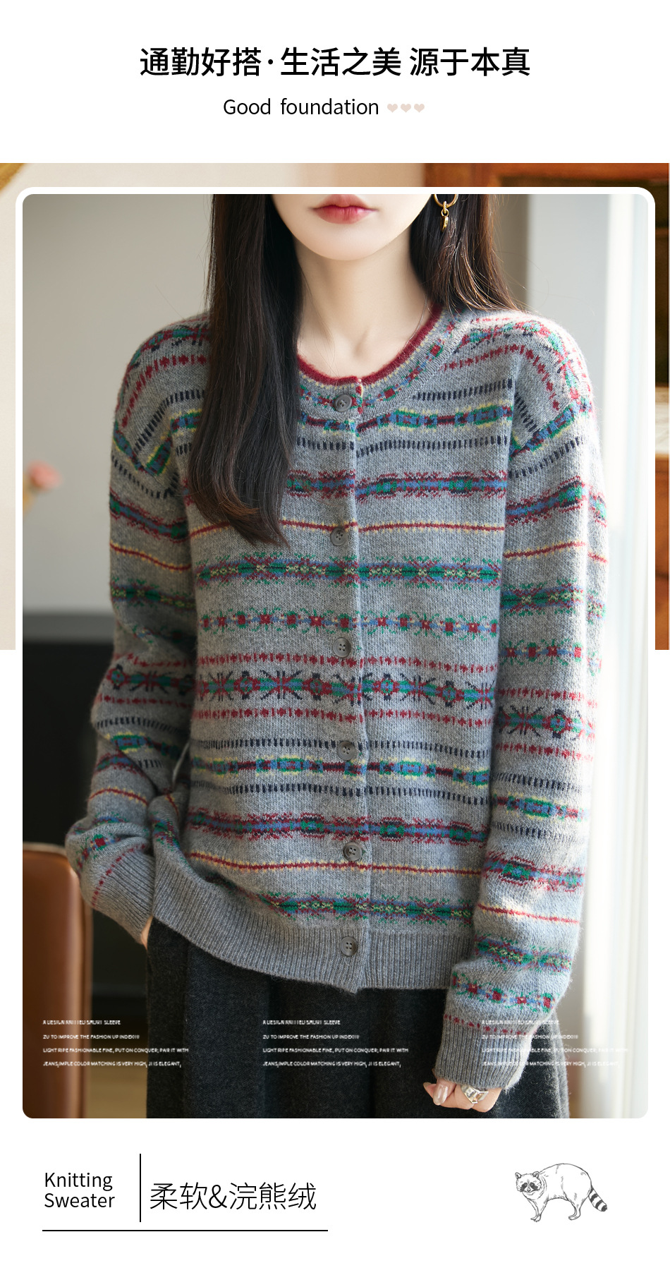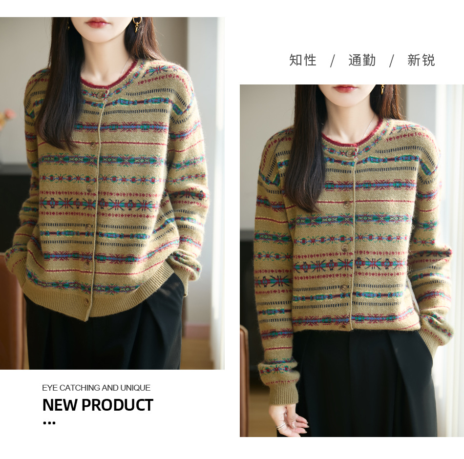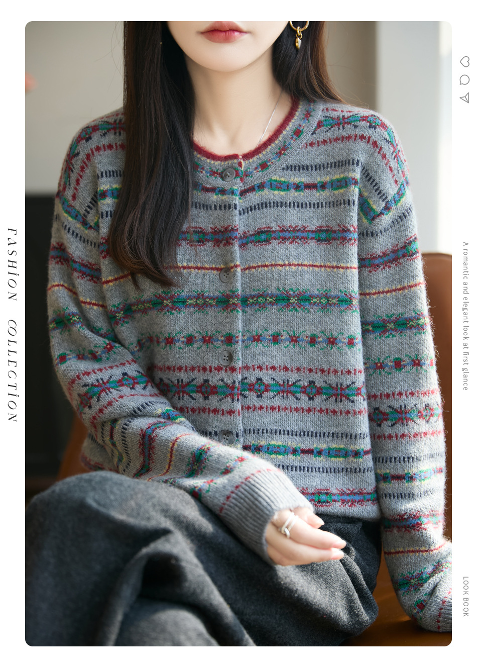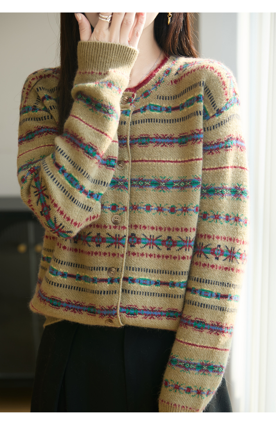 复古提花彩色开衫女秋冬内搭文艺 民族风多色针织外套慵懒百搭