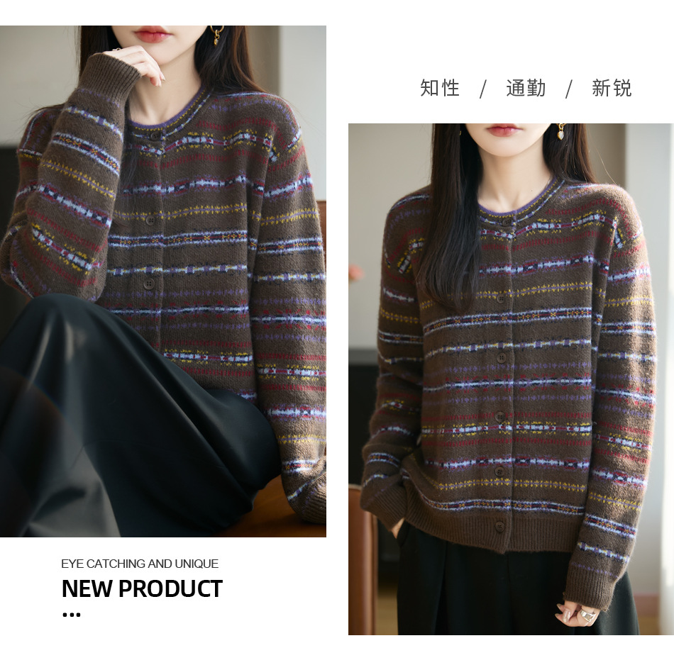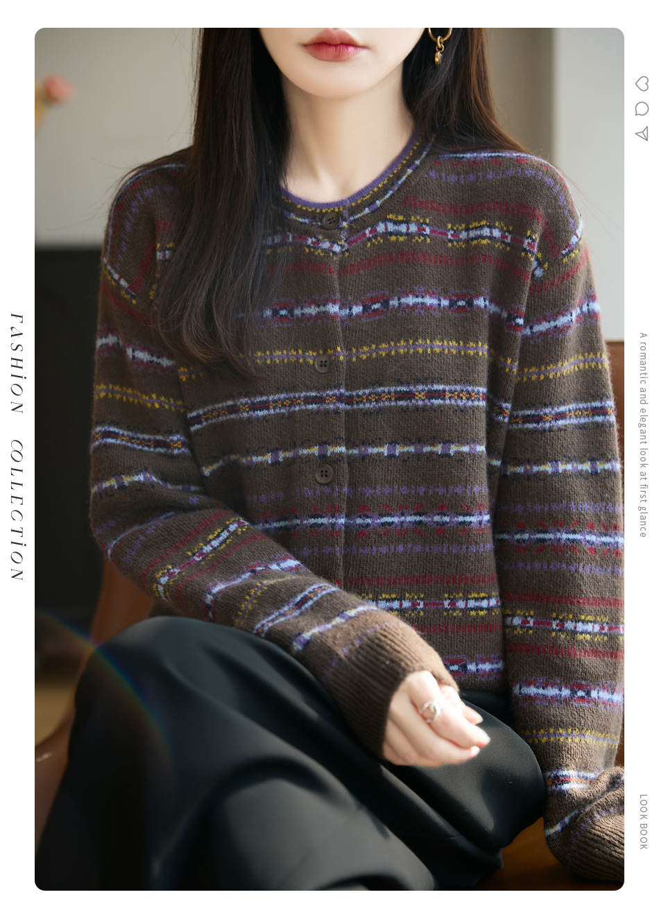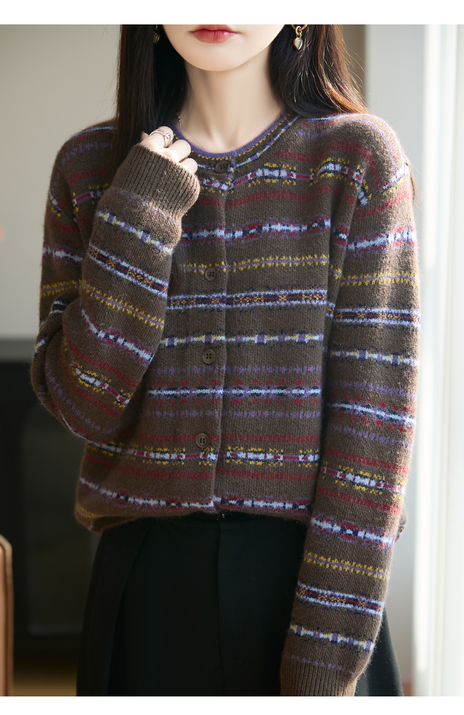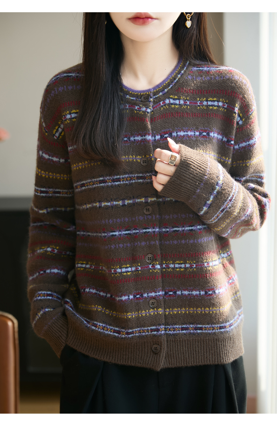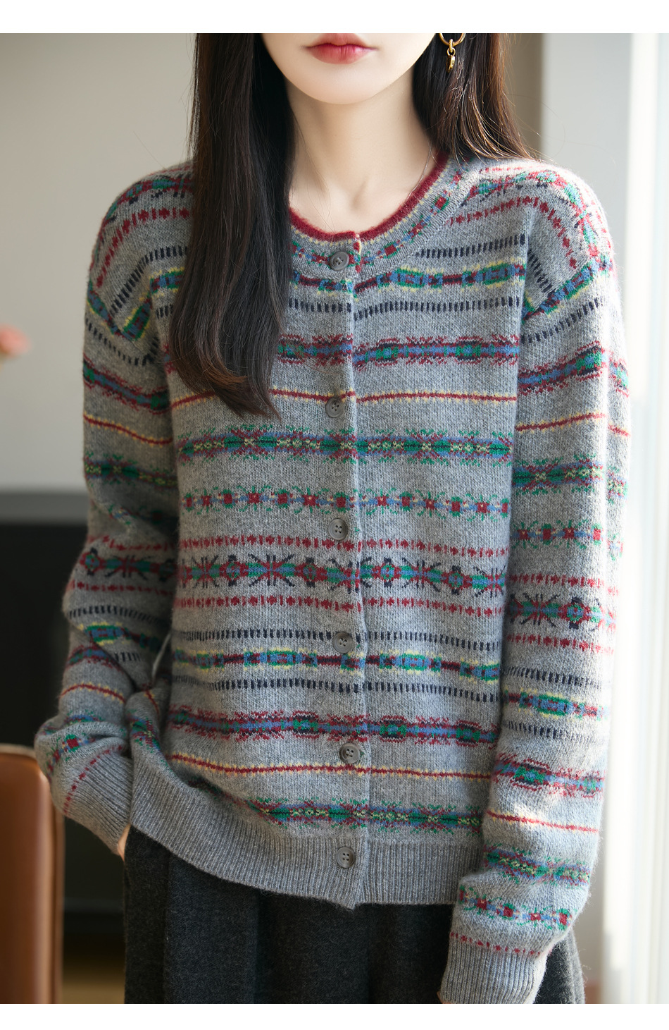 复古提花彩色开衫女秋冬内搭文艺 民族风多色针织外套慵懒百搭