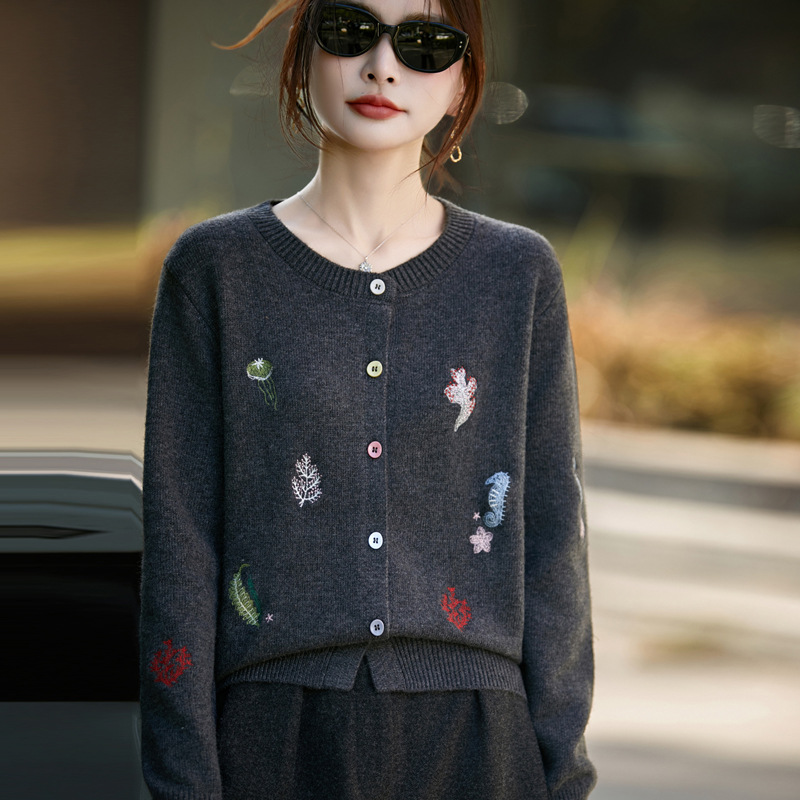 日系复古刺绣针织衫外套女秋冬外搭慵懒风毛衣软糯开衫女装上衣