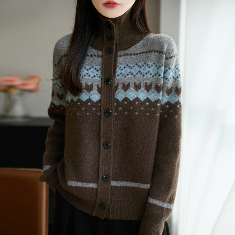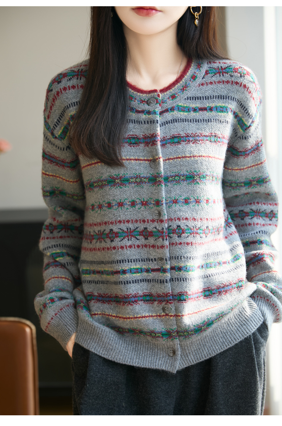 法式费尔岛提花开衫女秋冬新款加厚保暖毛针织衫打底毛衣女装外套
