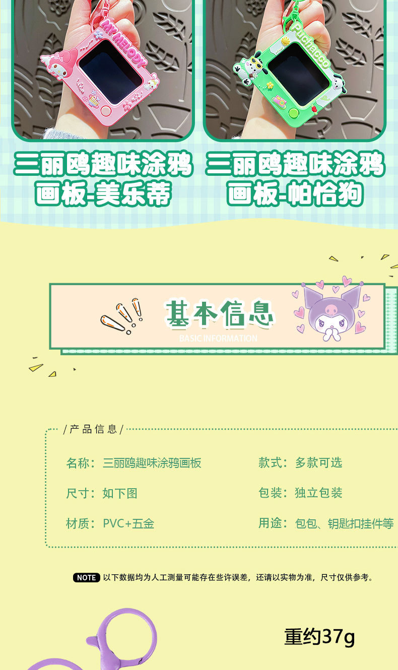 三丽欧库洛米卡通可爱涂鸦画板写字画画创意钥匙扣小挂件情侣儿童