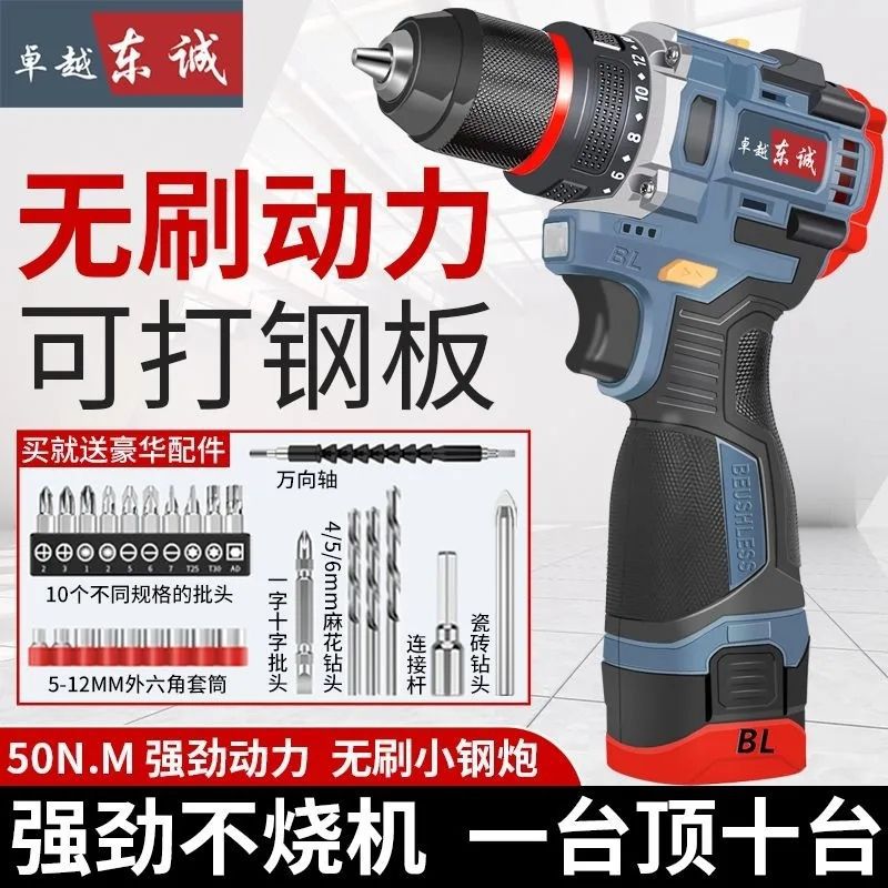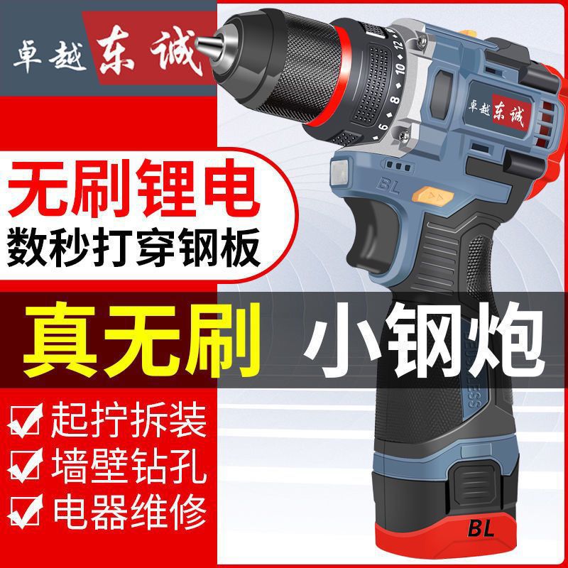 东城纯铜无刷电钻大功率锂电家用工业冲击钻充电电动螺丝刀小钢炮