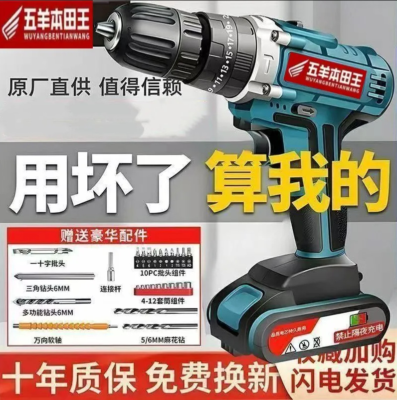 五羊纯铜大功率锂电钻家用工业多功能冲击钻充电式电动螺丝刀电钻