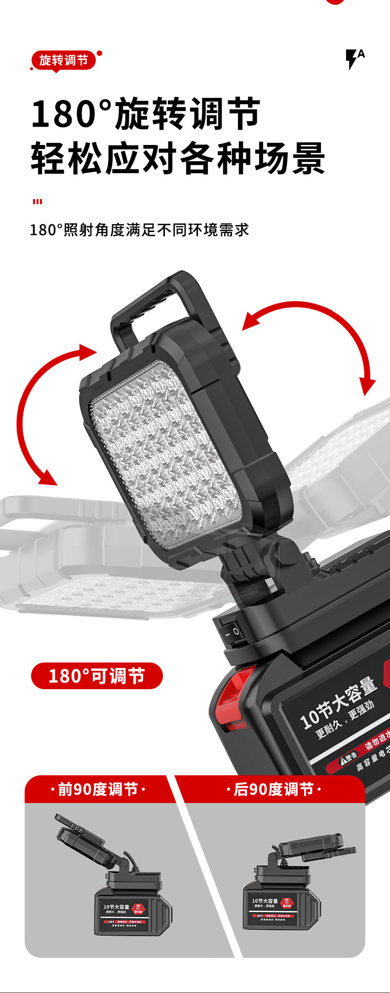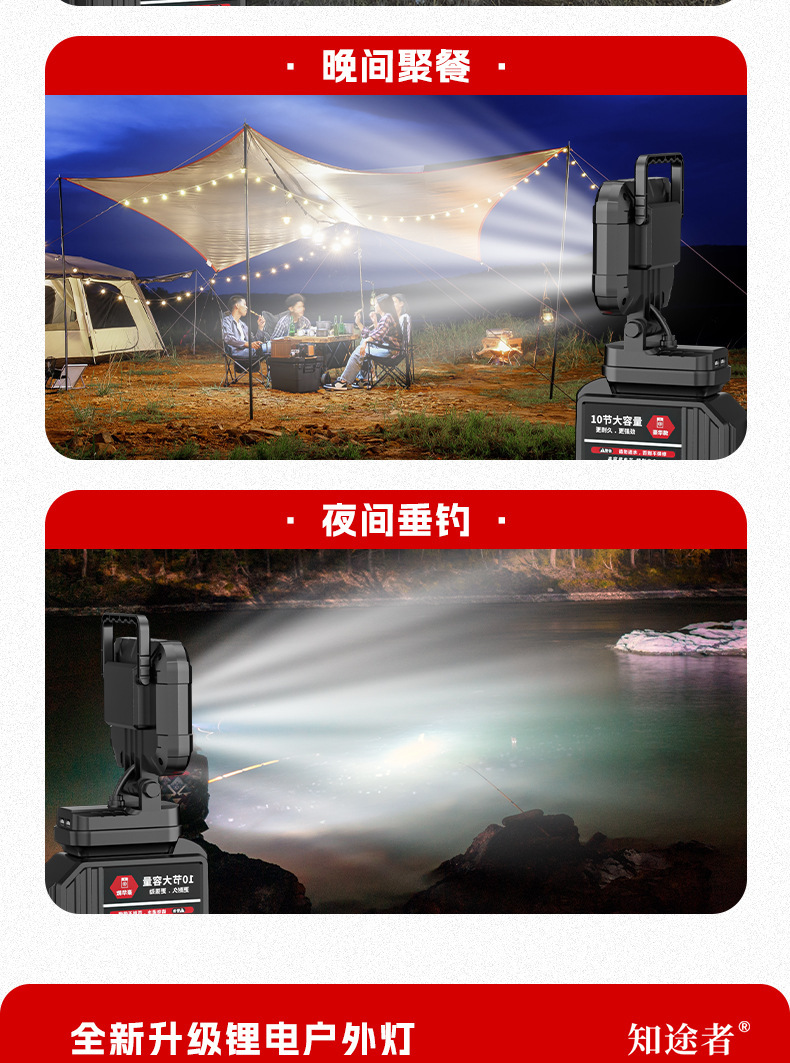 适配牧田德伟大艺米沃奇插脚锂电池工具露营灯电工应急抢修灯强光