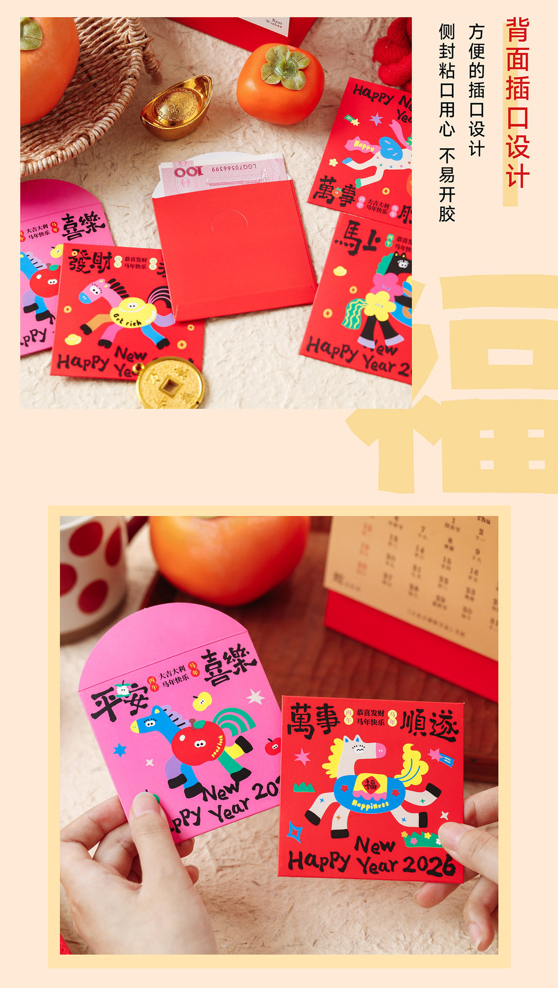 2026年马年卡通生肖新年红包创意可爱儿童压岁红包大号硬质利是封
