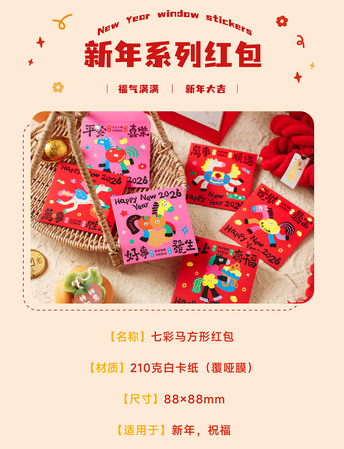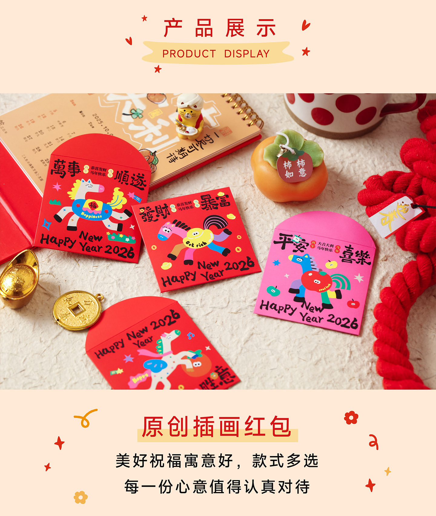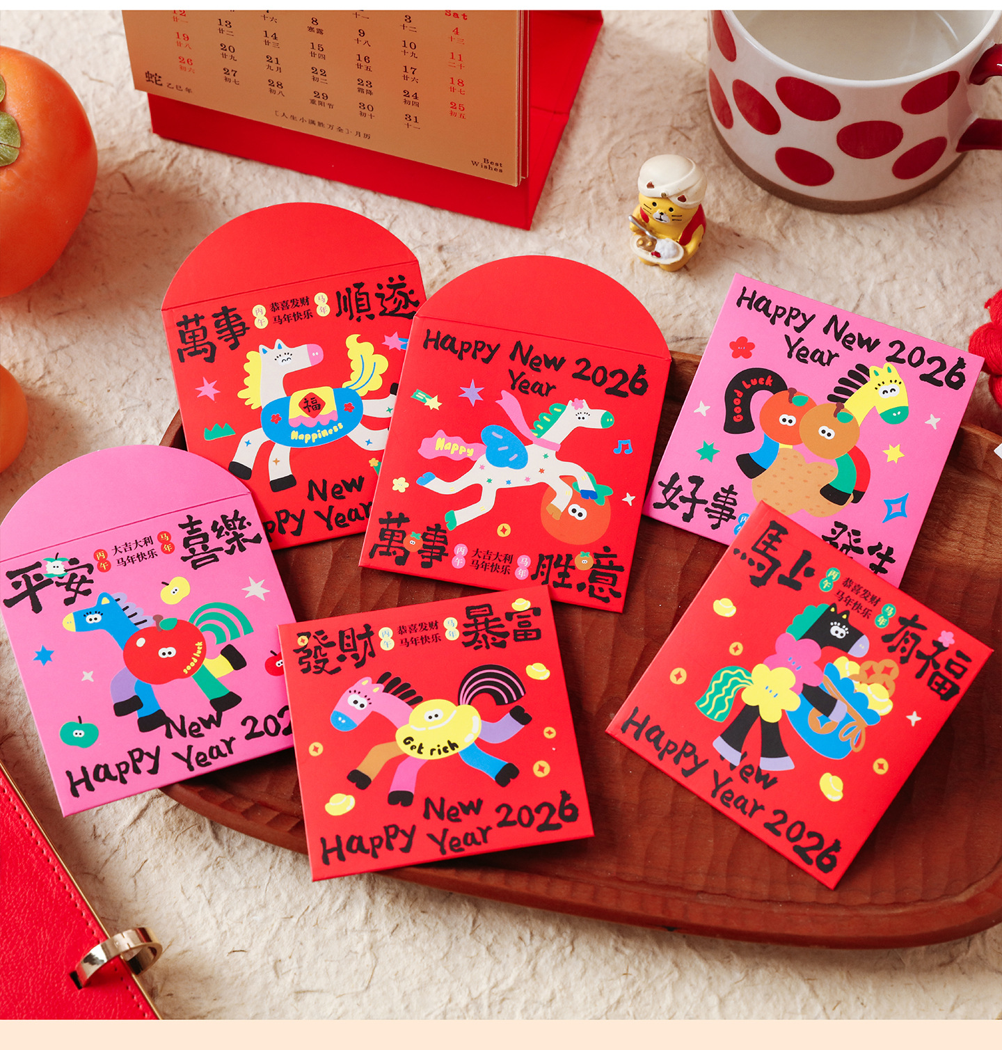 新年美好心愿2026马年红包个性创意卡通利是封通用硬壳红包封面
