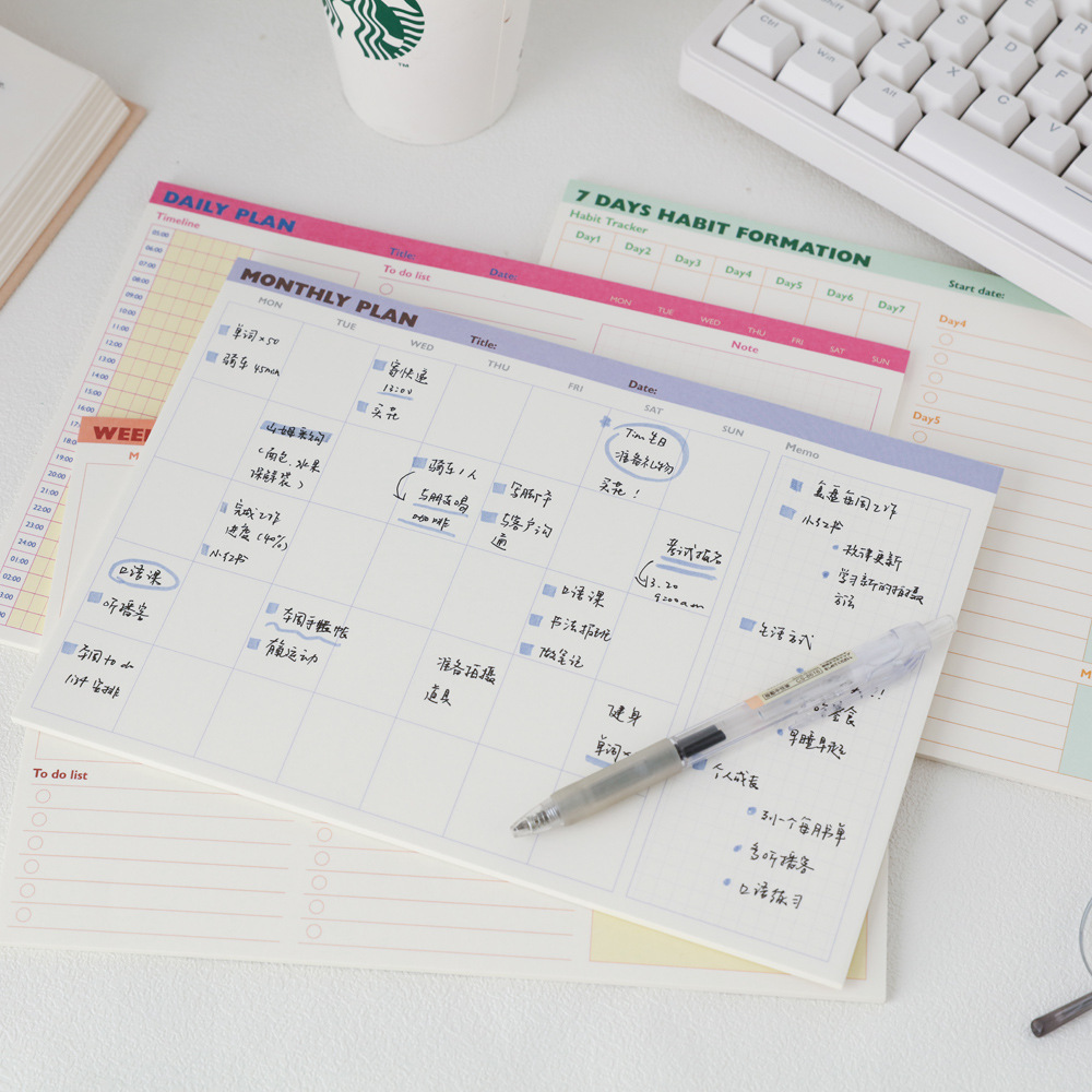 日付計画紙、学生学習目標計画、スケジュール計画紙、破れない付箋