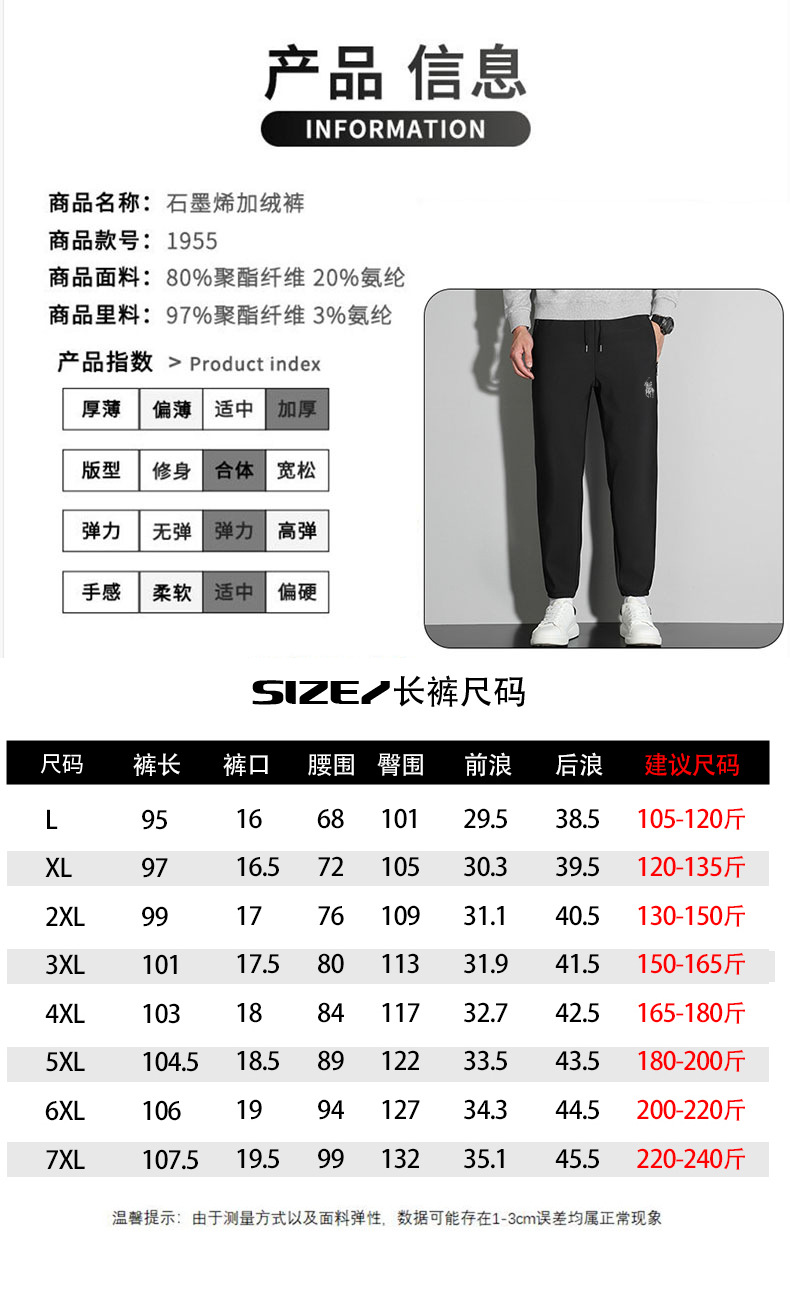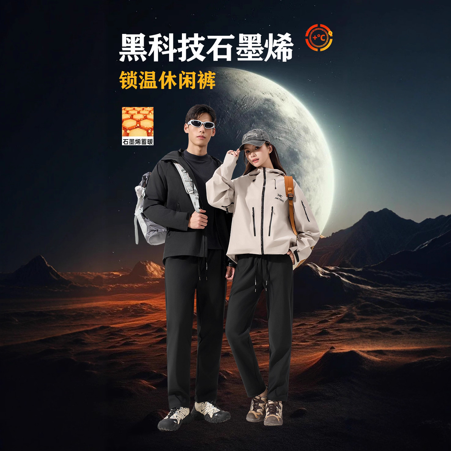 石墨烯贴片款加绒速干裤石休闲运动裤男女同款直筒冬季保暖休闲裤
