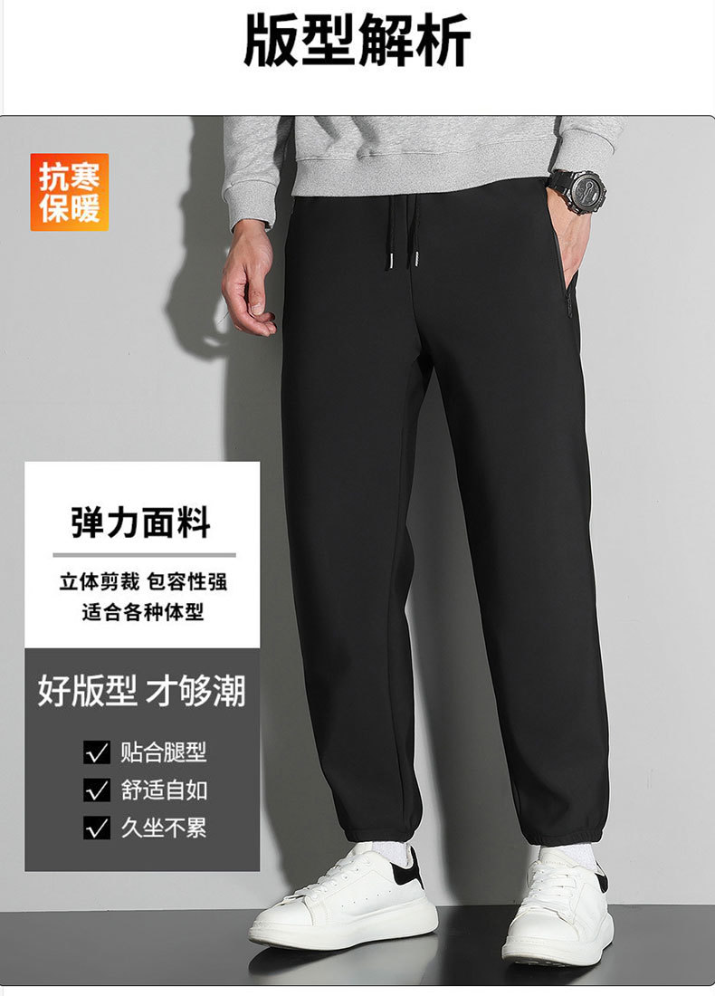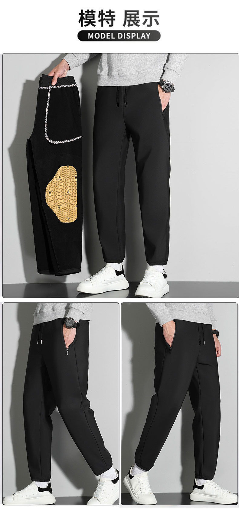 六防男士休闲裤加绒温变护膝秋冬季保暖抗寒男女同款直筒运动长裤