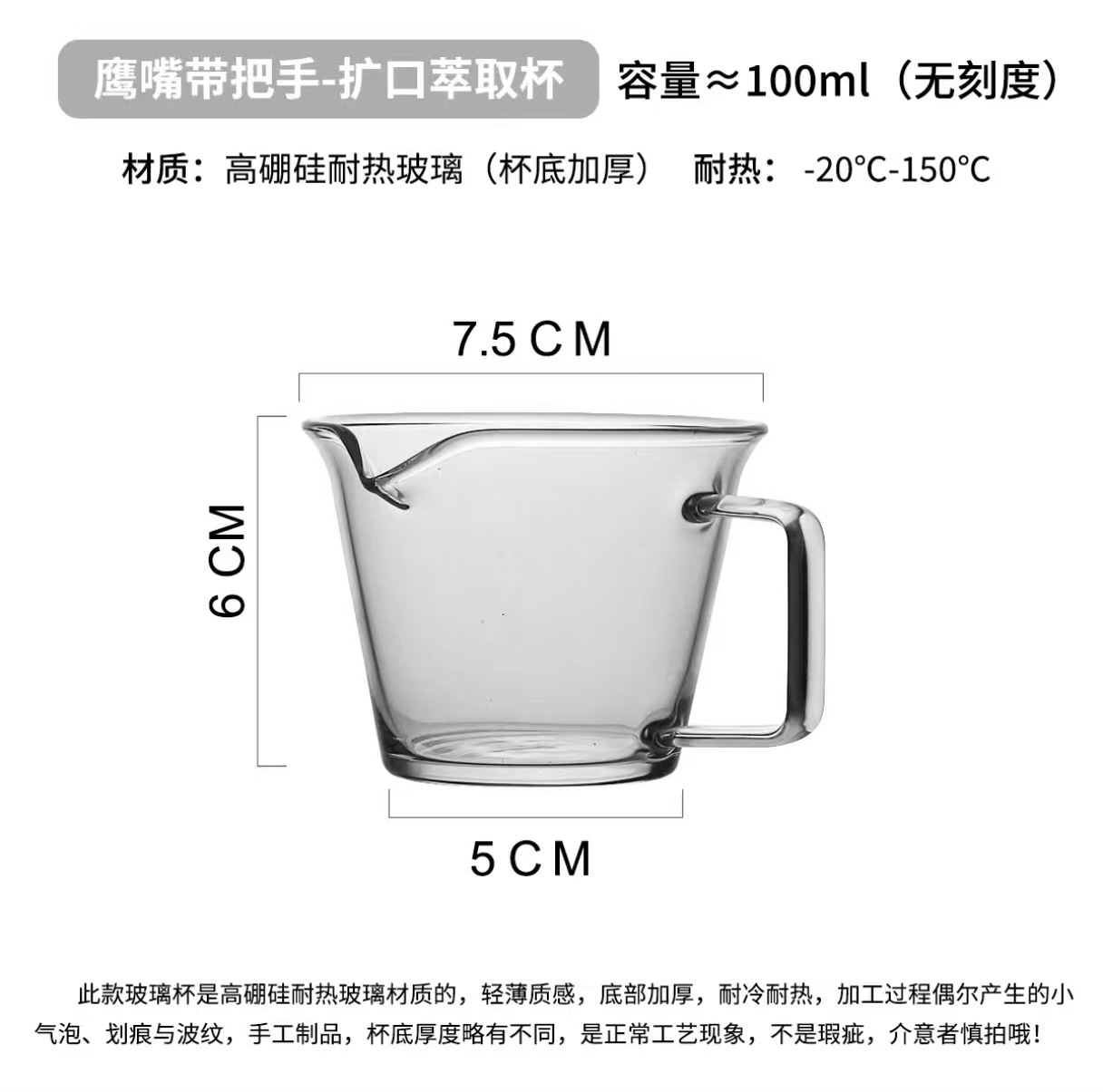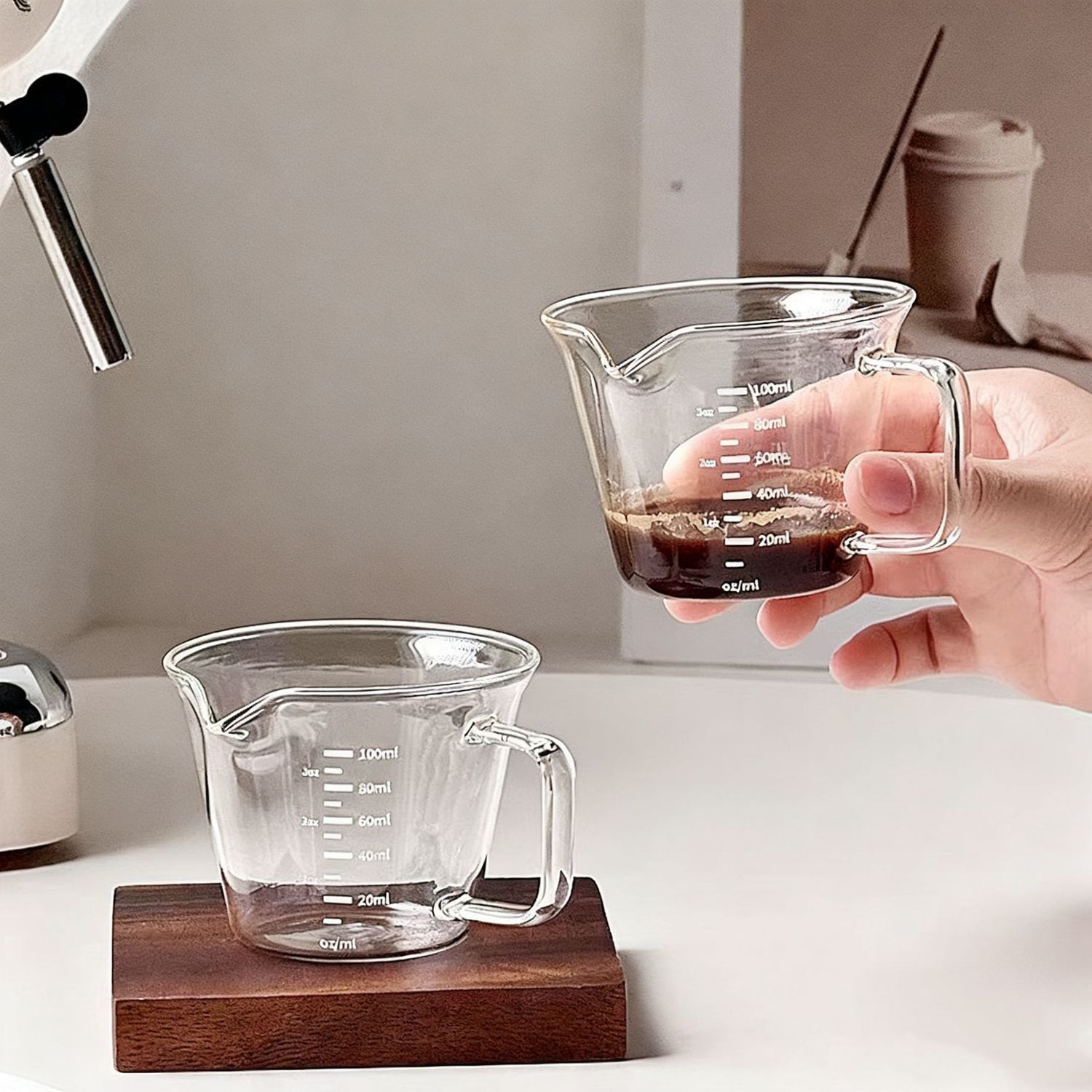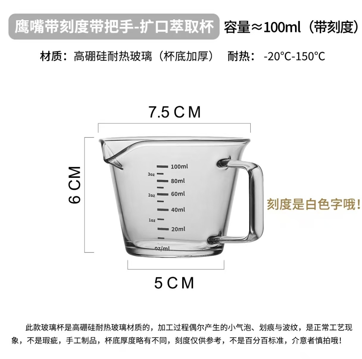 ins耐热玻璃咖啡量杯带刻度带把萃取杯意式浓缩盅司小奶盅