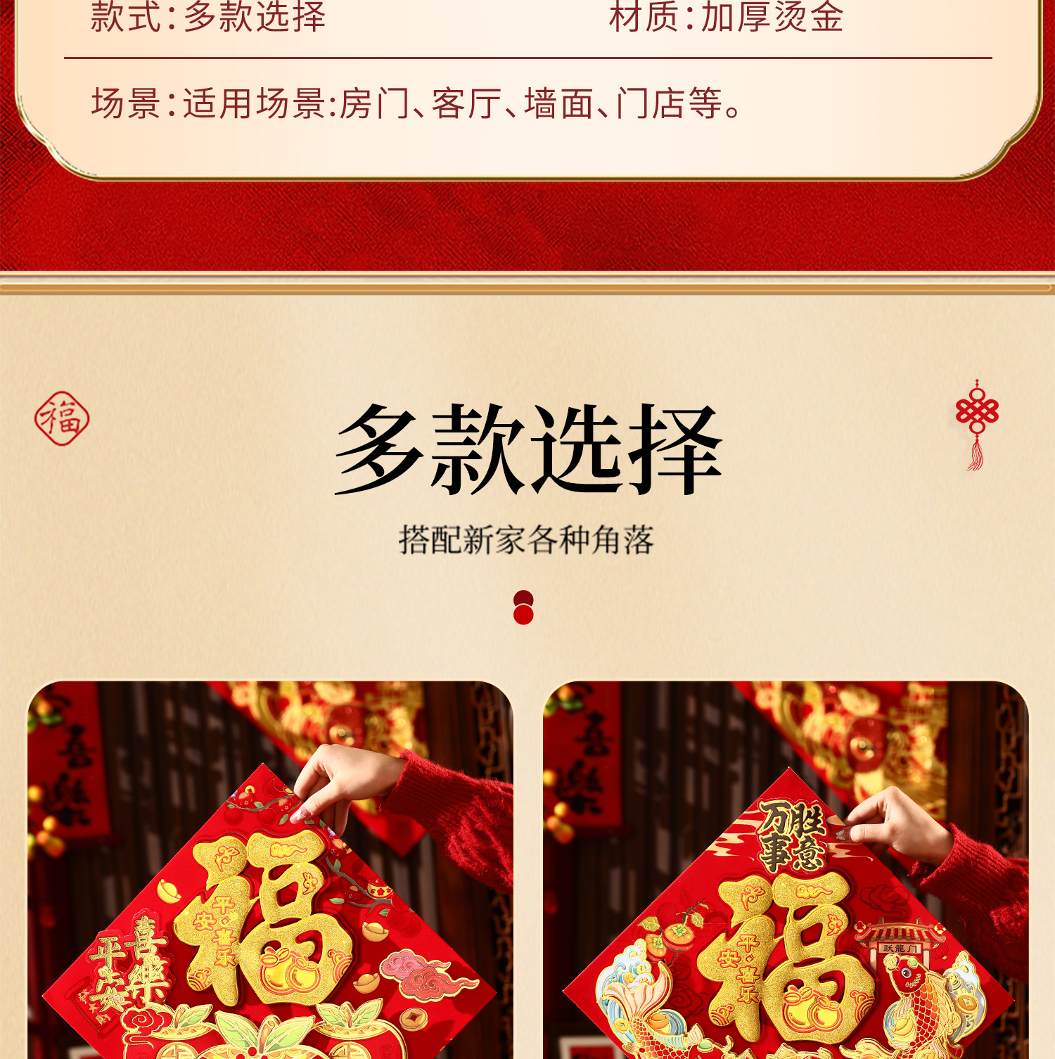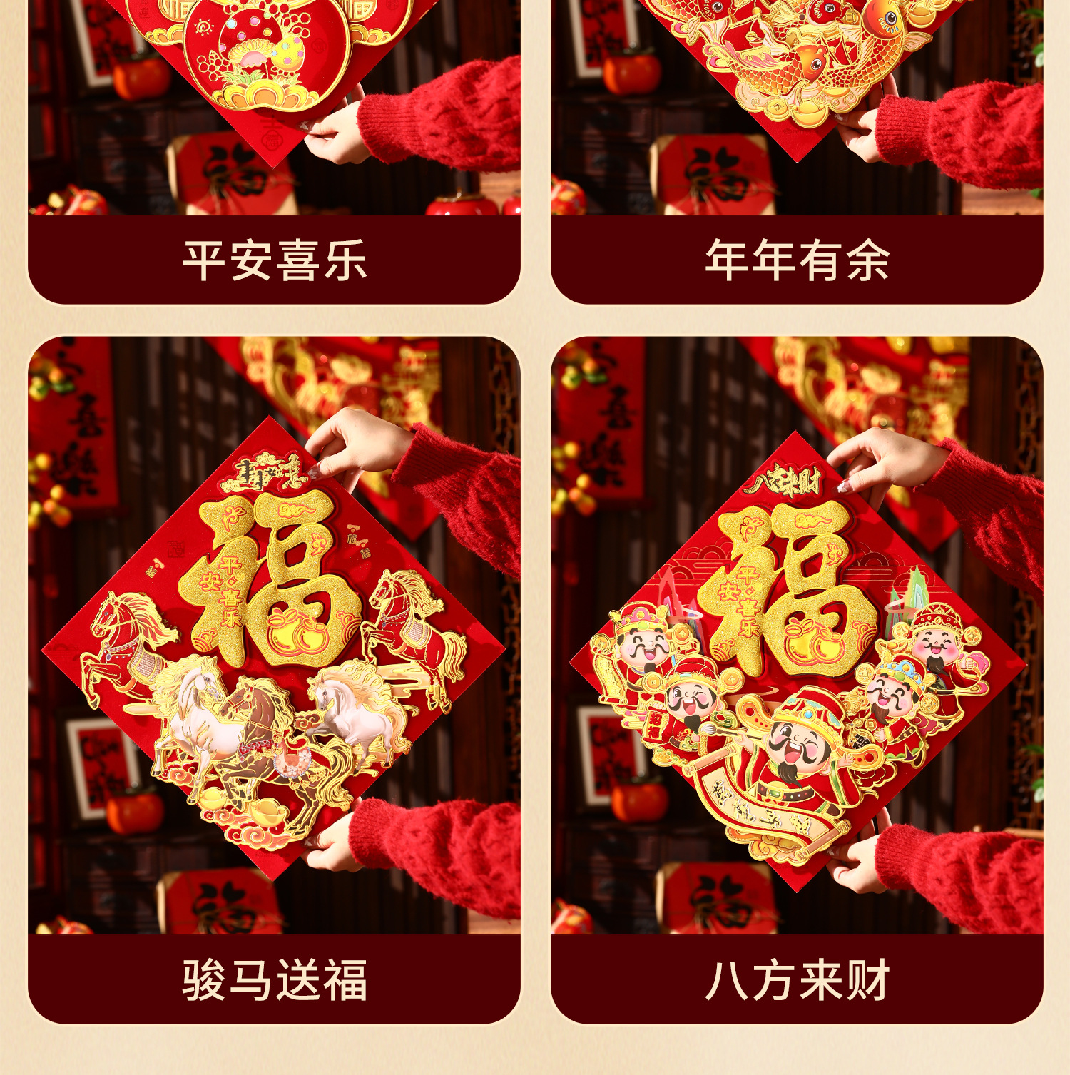 新年福字贴2026新款过年立体福字门贴马年春节入户门贴纸新年装饰
