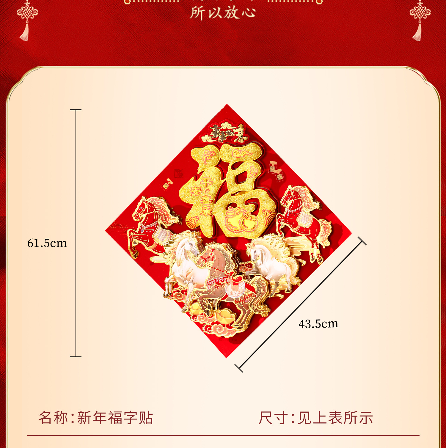 2026新款马年福字贴纸过年春节立体福字门贴植绒大门新年装饰年货