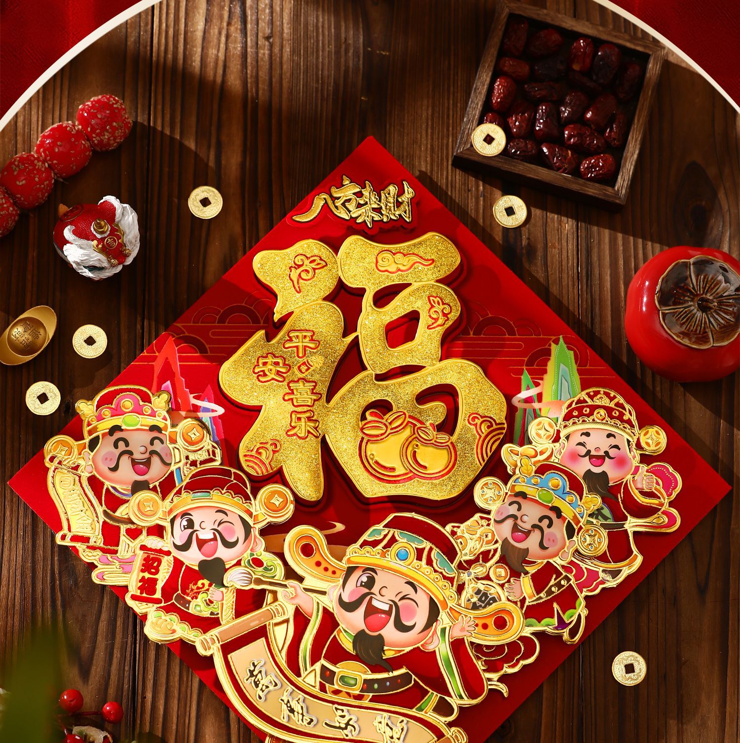 2026新款新年立体福字植绒创意门贴春节过年大门装饰绒布自粘门幅