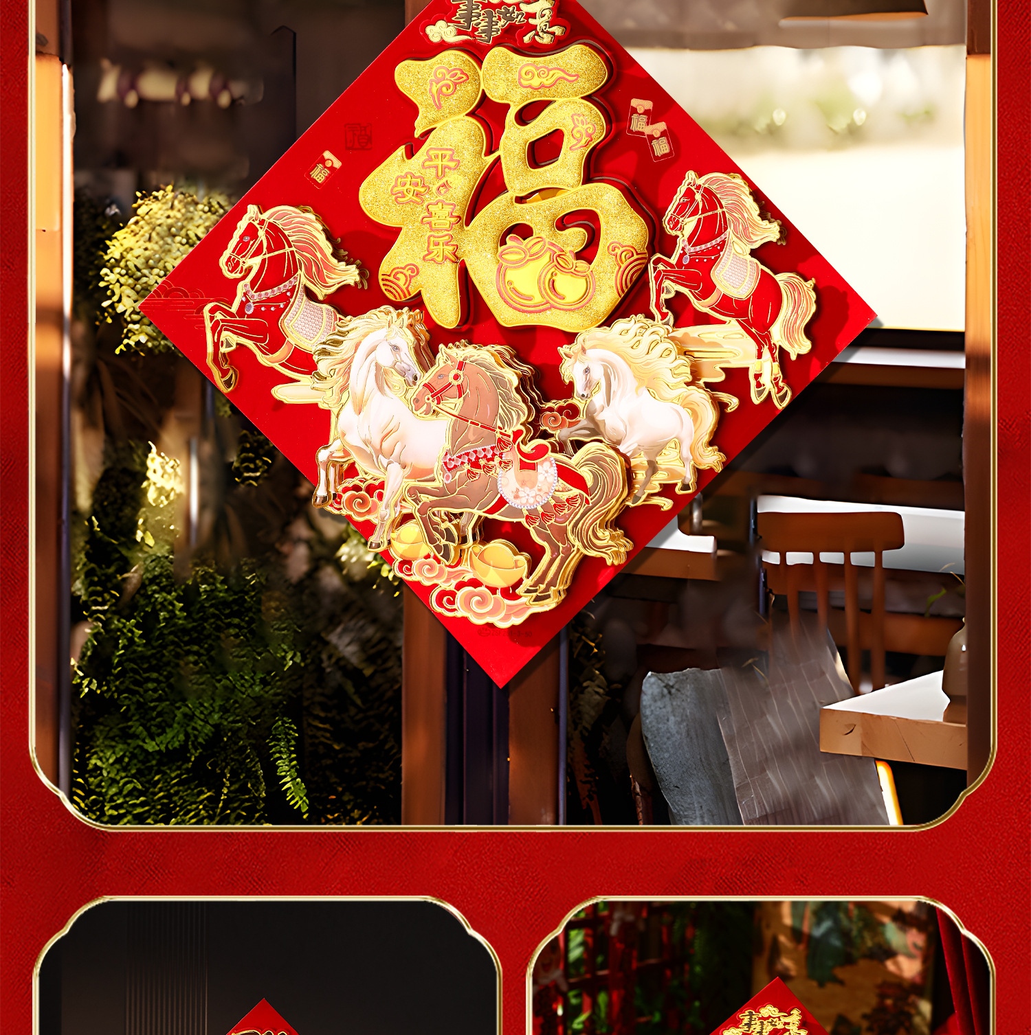 新年对贴2026新款过年入户门福字贴马年生肖对拜装饰春节用品年货