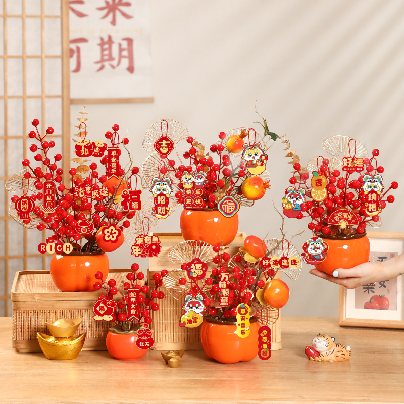 植毛小提灯2025蛇年盆栽は新年の提灯を飾っています。