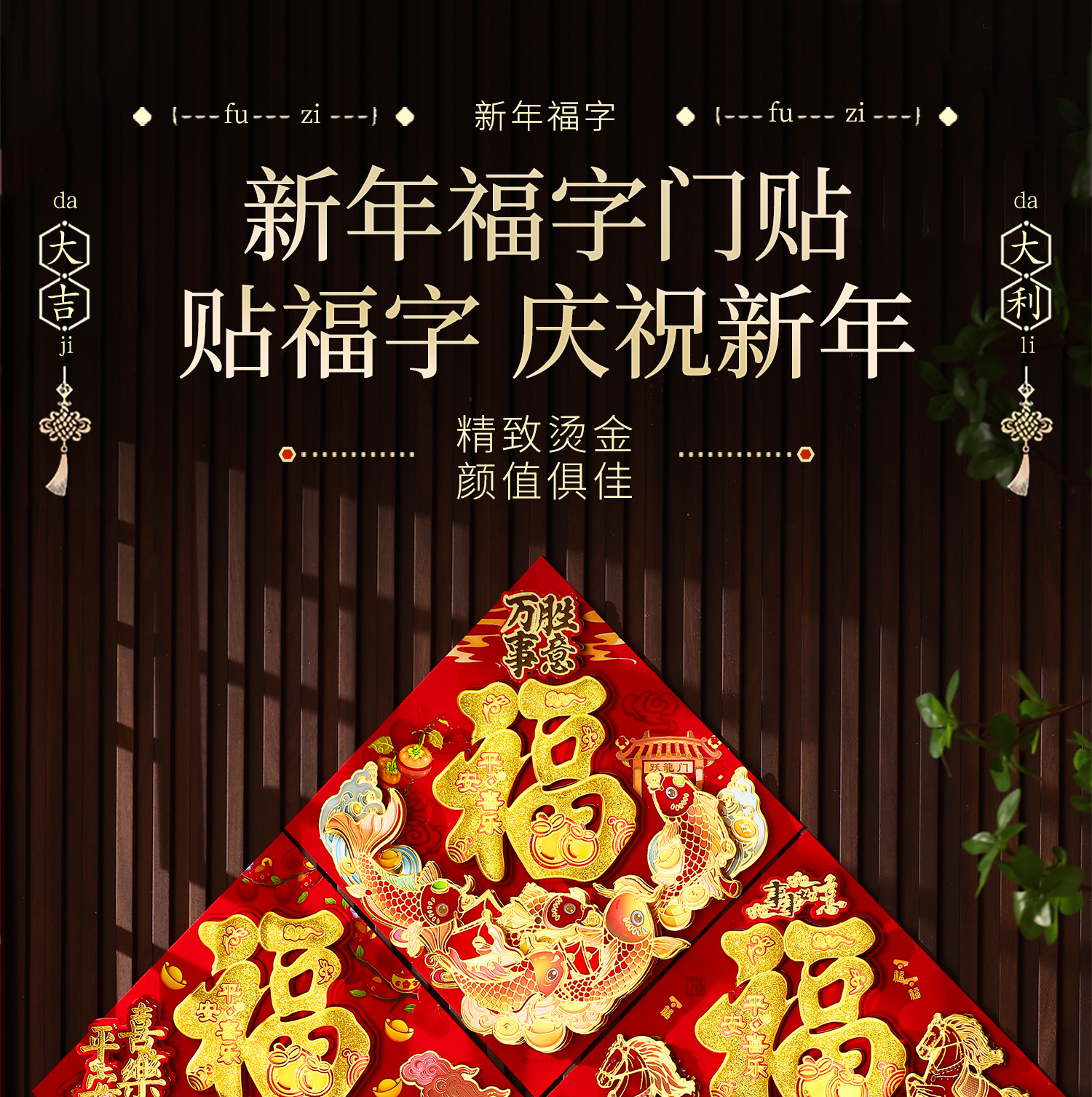 2026马年全背胶福字撒金植绒立体福门贴春节对联春联厂家批发绒布