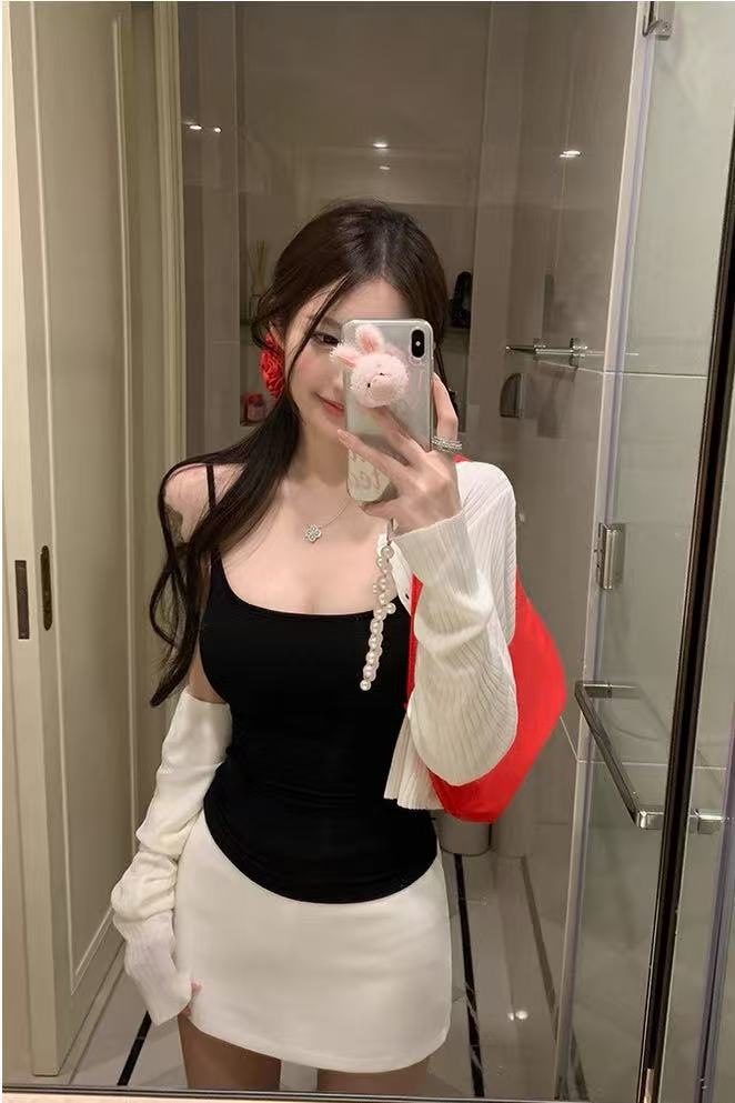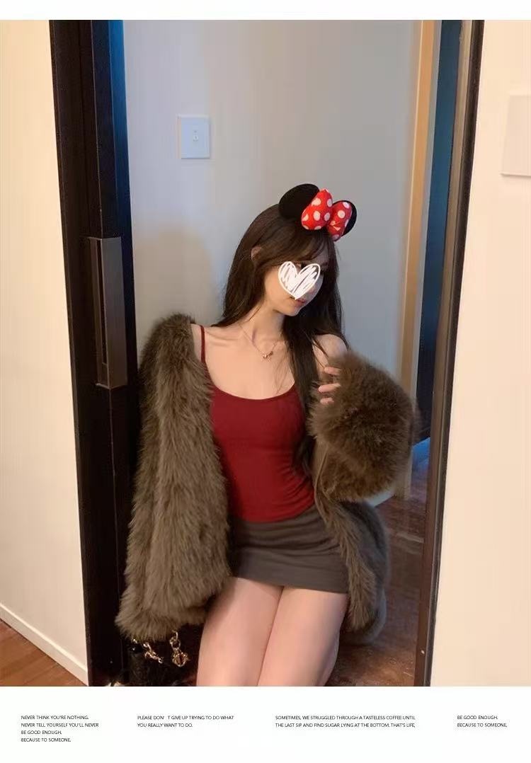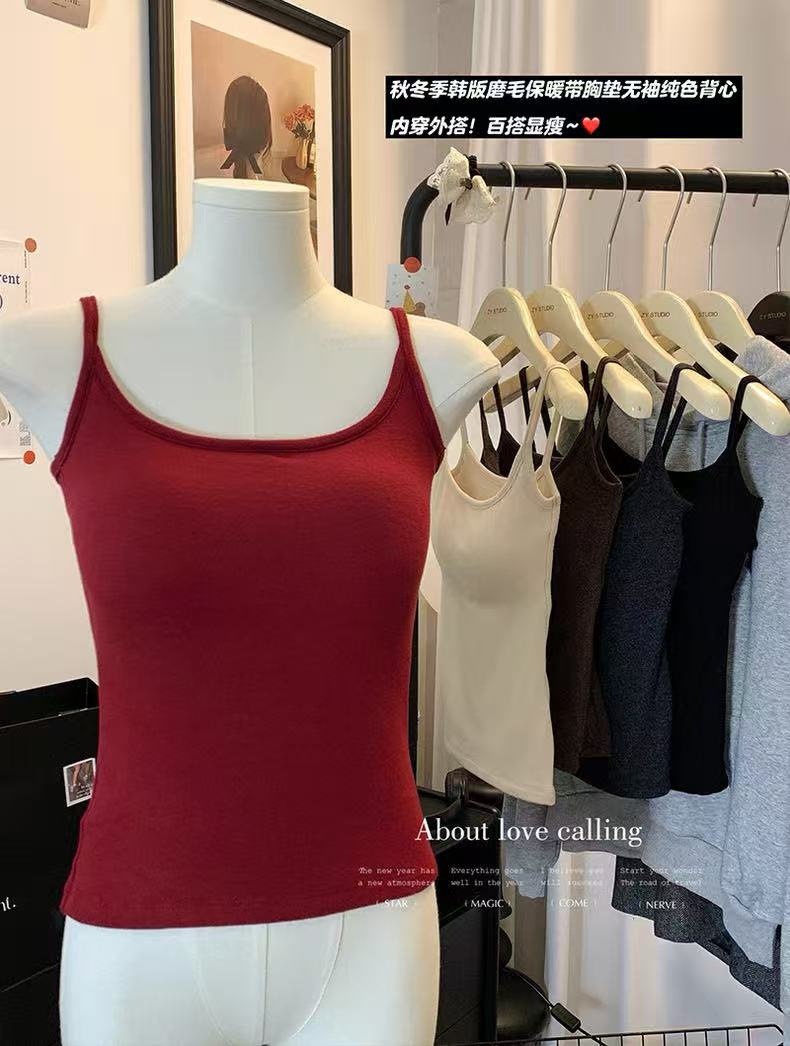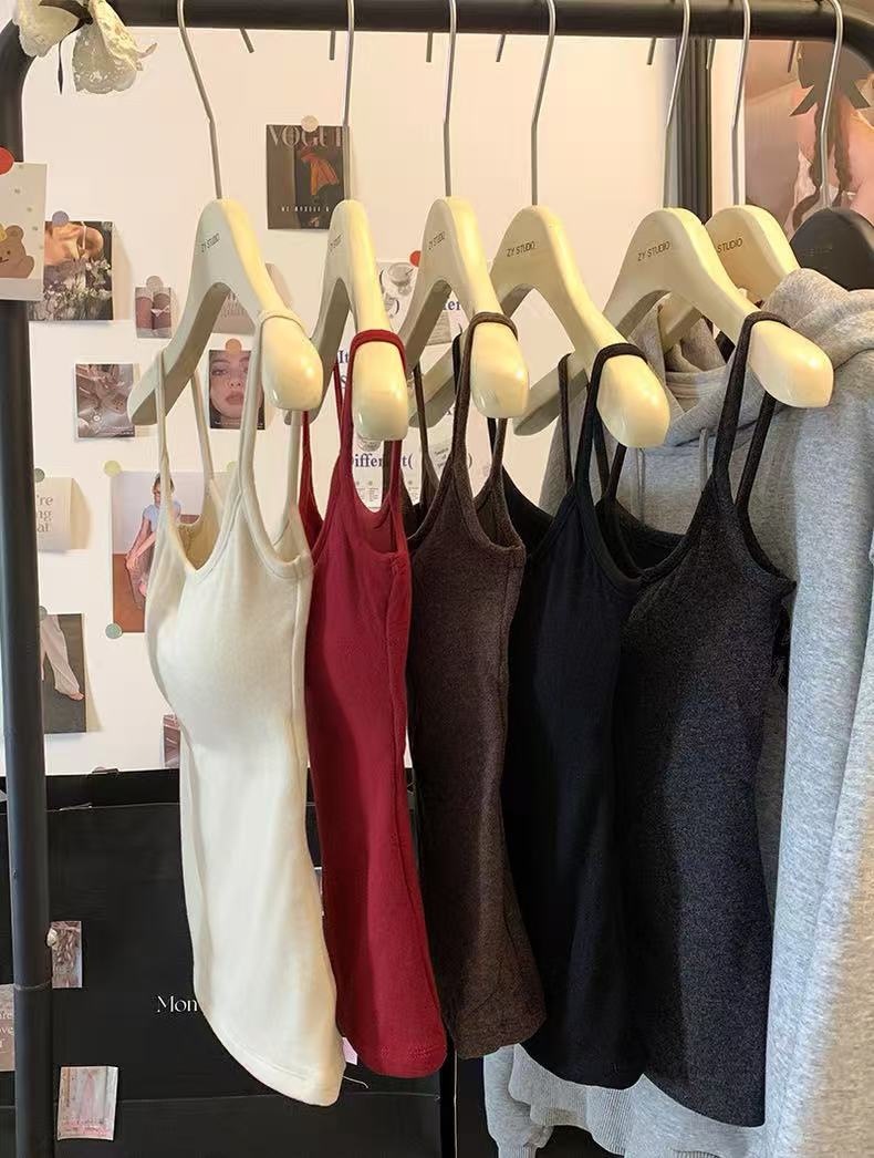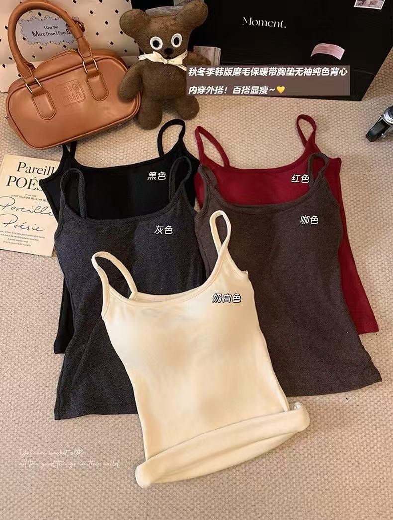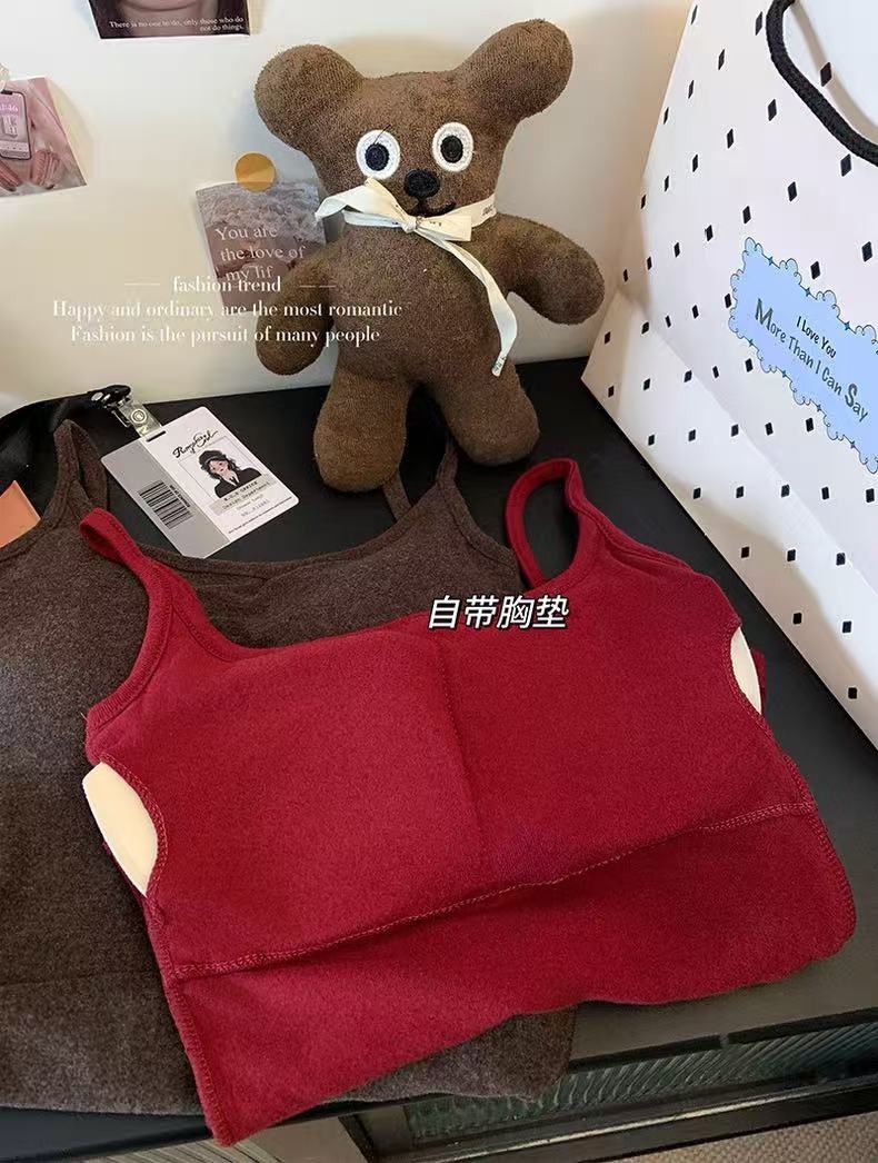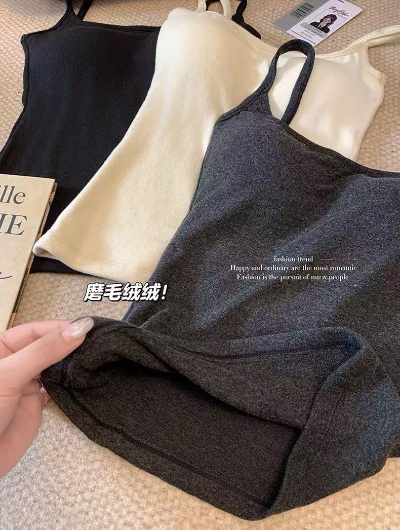 989#初秋新款纯欲风磨毛保暖吊带背心修身显瘦胸垫可拆卸百搭上衣