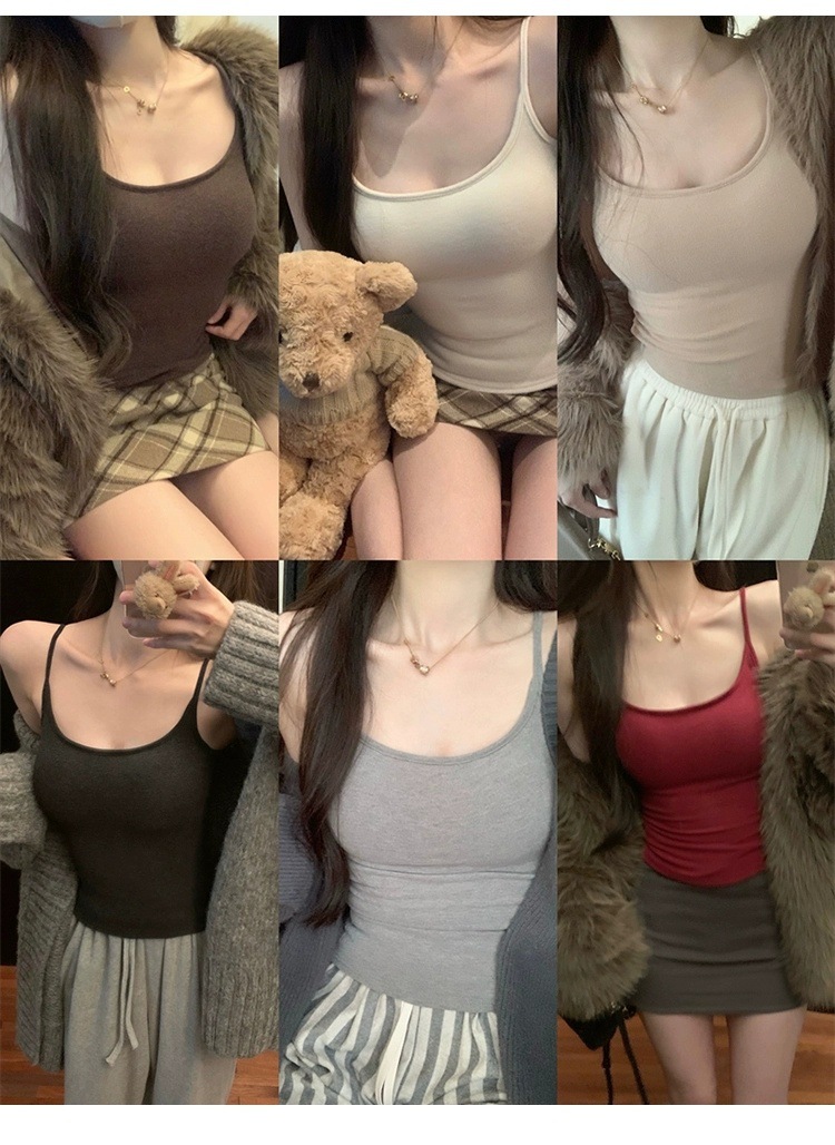 10172#初秋新款纯欲U领双面磨毛保暖吊带背心修身固定带胸垫百搭