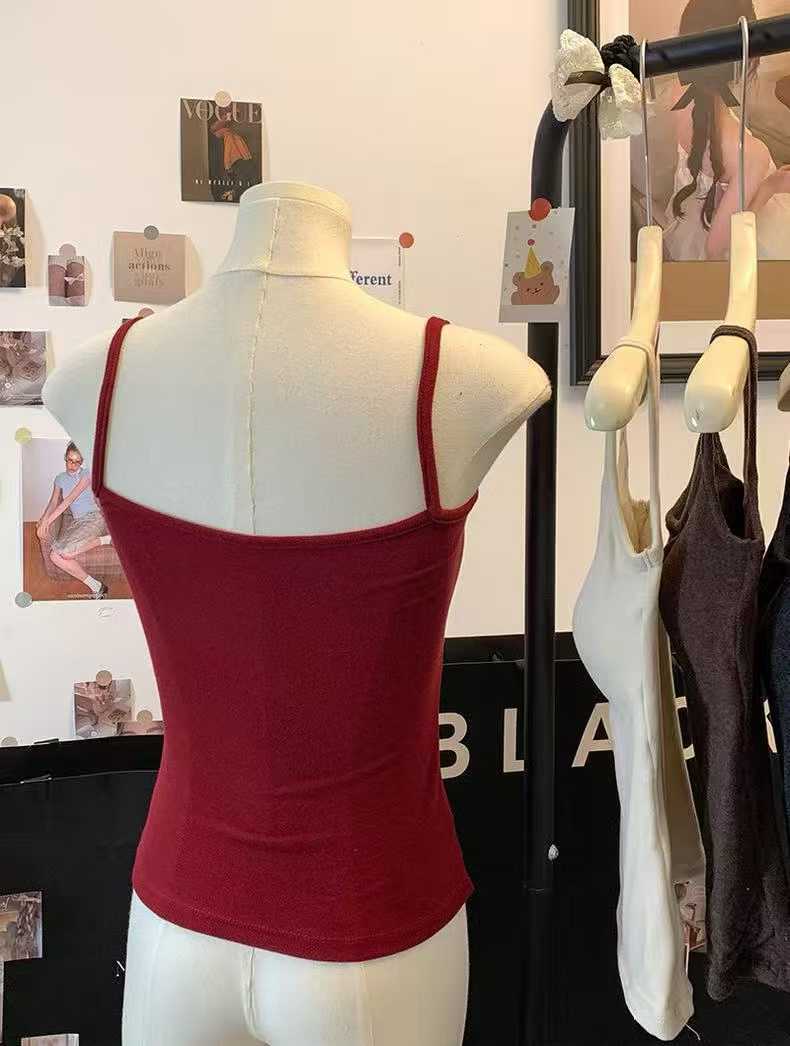 979#早秋新款纯欲磨毛大U领吊带工字背心修身固定带胸垫内搭显瘦