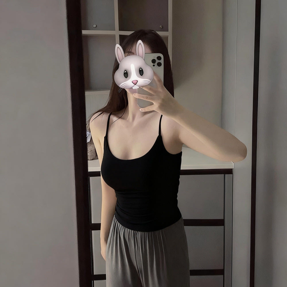 A122#早秋新款德绒保暖吊带背心修身显瘦女一体式带胸垫百搭上衣