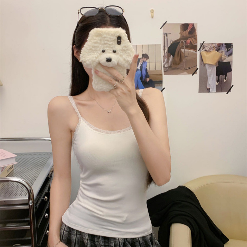 9081#早秋新款甜辣磨毛蕾丝花边保暖吊带背心修身固定带胸垫显瘦