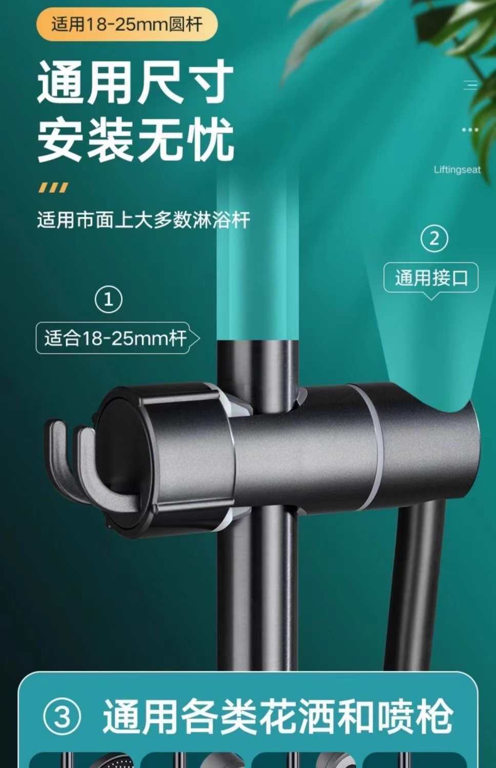 免拆管淋浴花洒支架滑套淋浴器配件手持喷头淋雨蓬头通用固定座