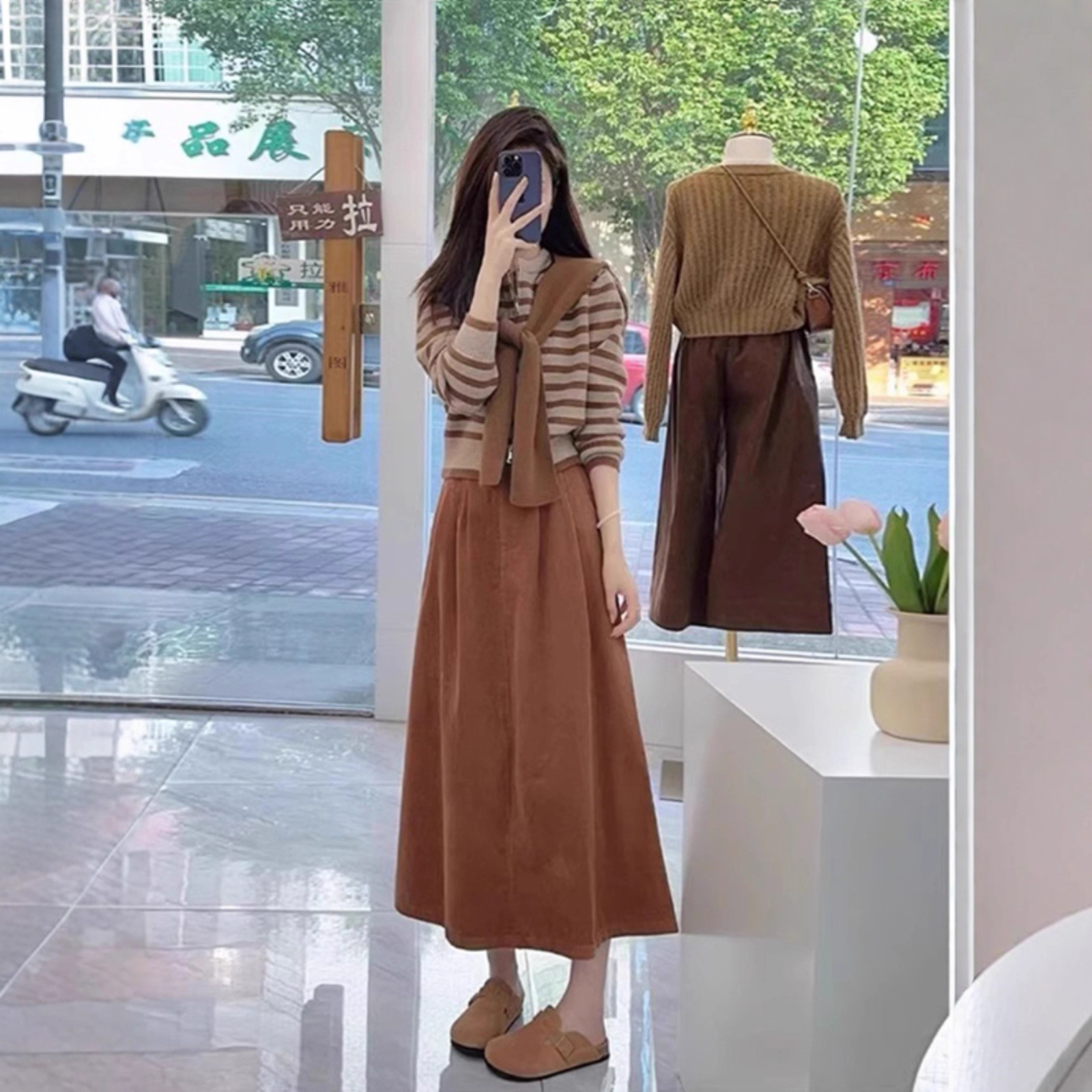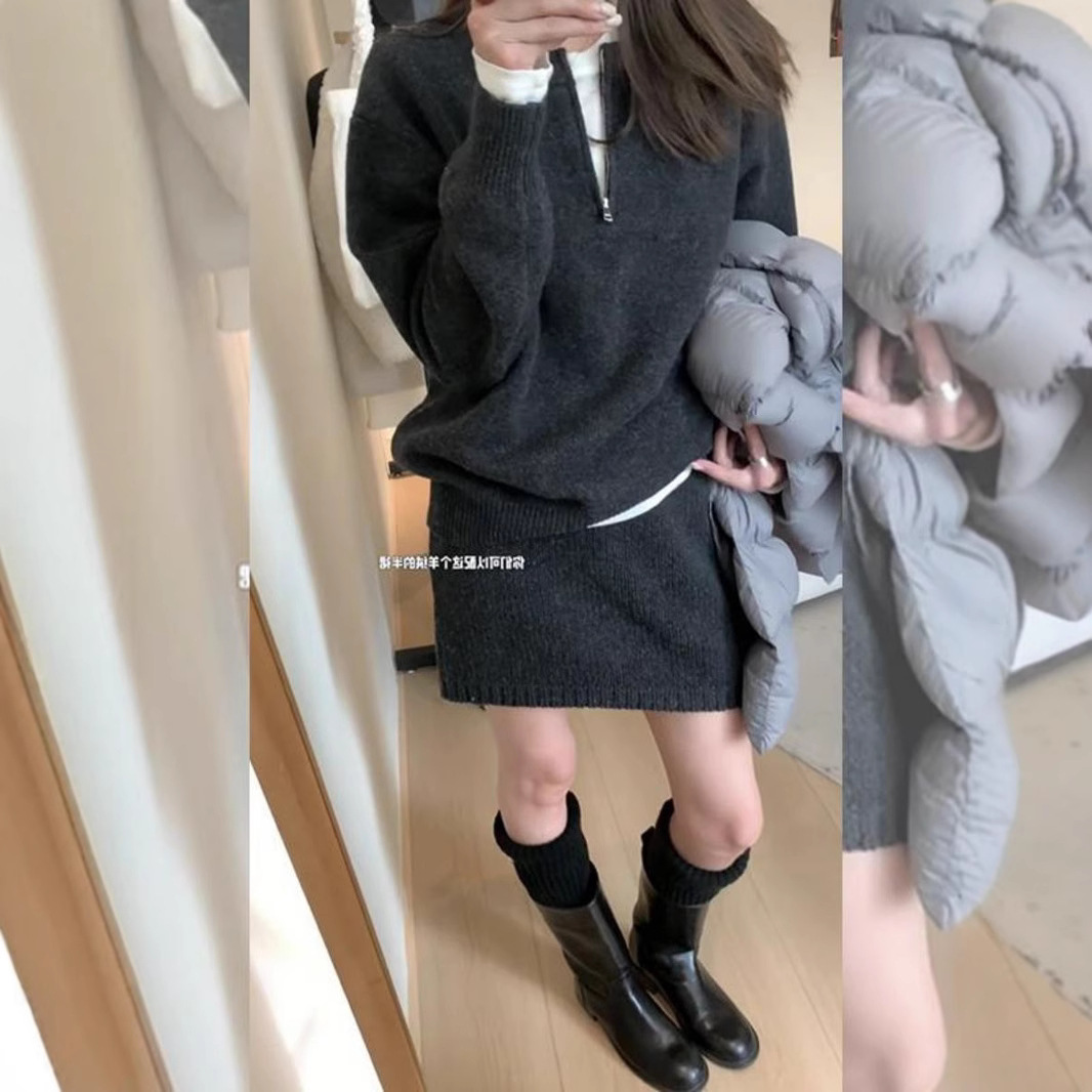 2026气质淑女春秋新款时尚套装针织衫毛衣宽松显瘦高腰a字半身裙