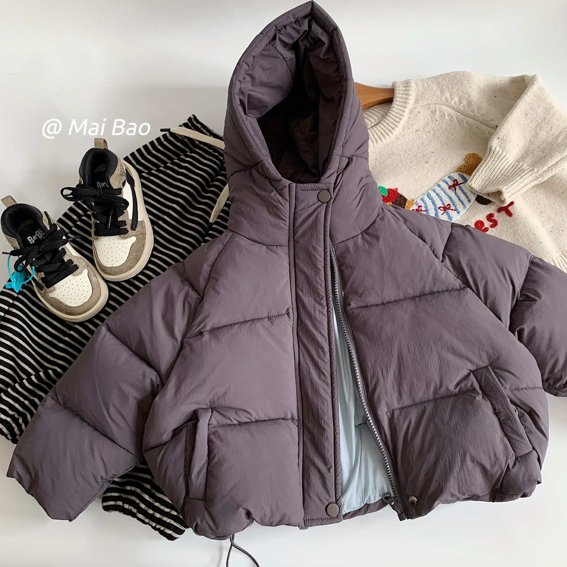 マイバオ子供用綿入り服2026冬用フード付きダウンジャケット、男の子と女の子用厚手コート、中小児用ラグランスリーブ綿入りジャケット