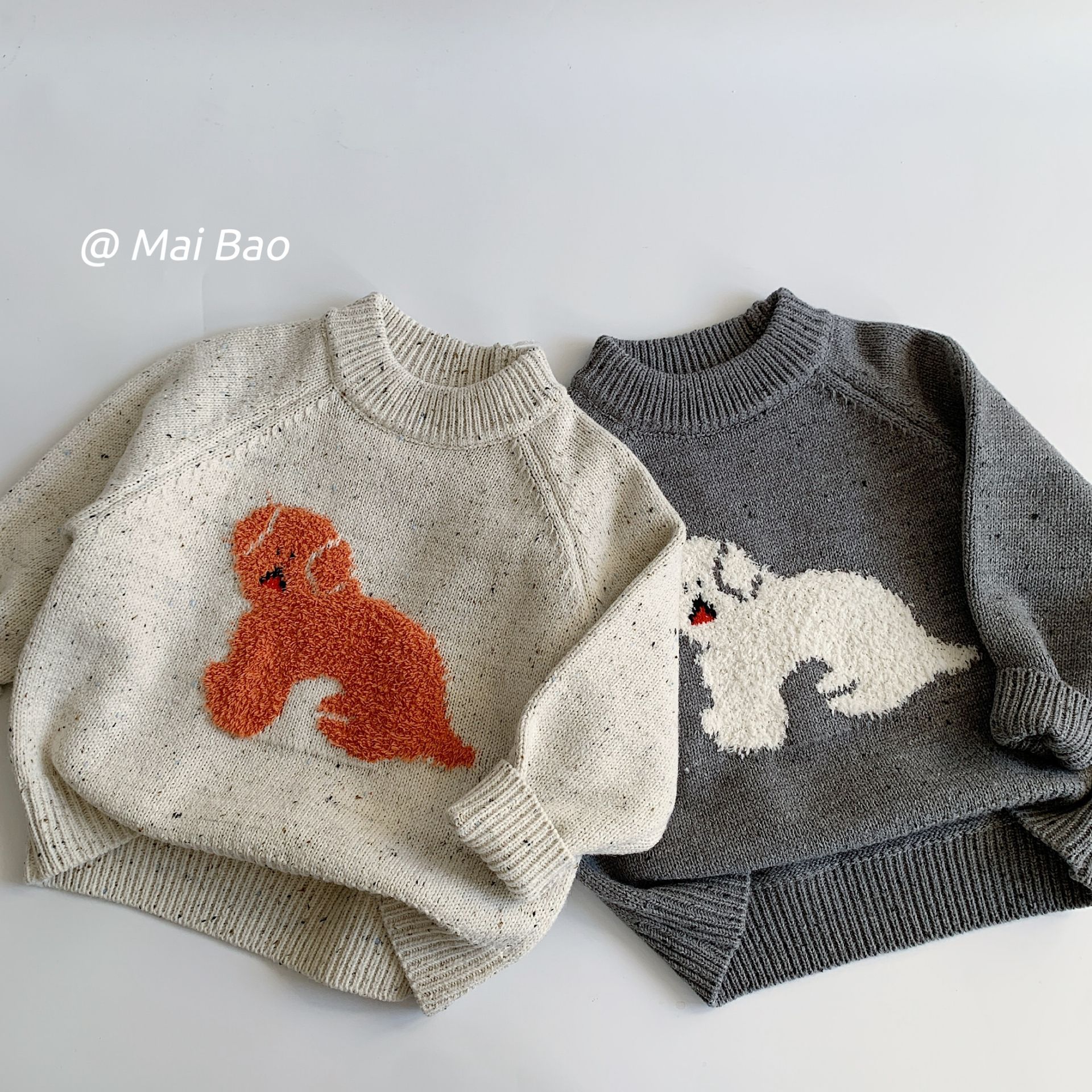 【在庫処分・返品交換不可・25元】子供用セーター 丸首 小犬柄 ポルカドット プルオーバー ニットウェア 男女兼用 新品