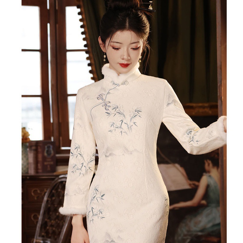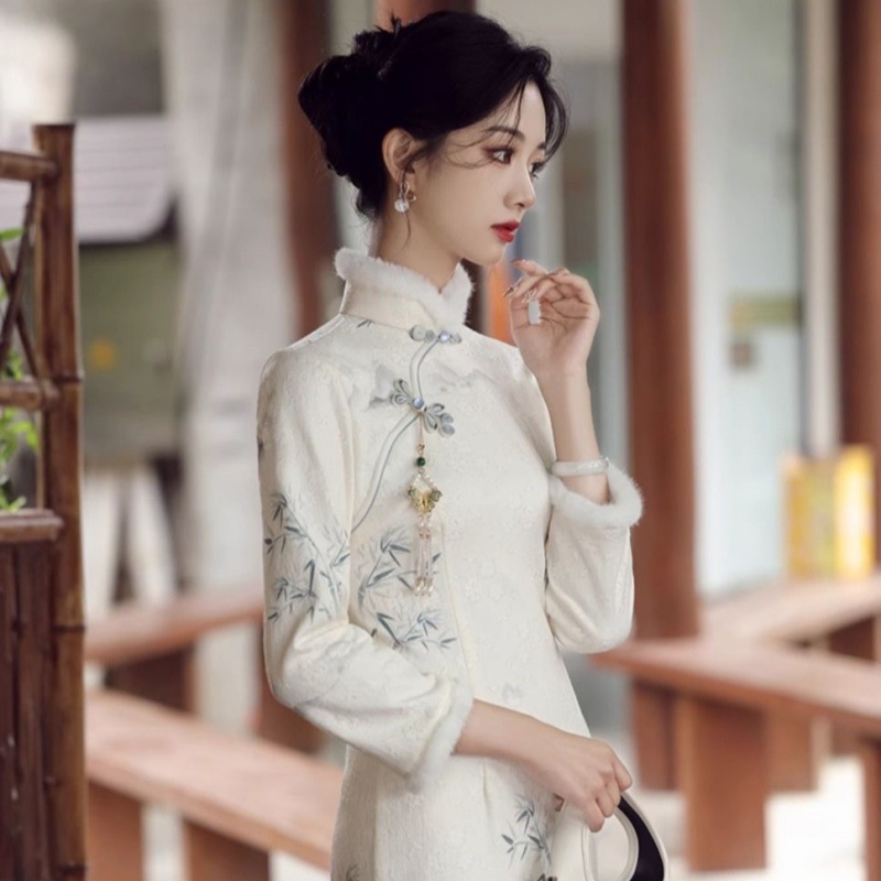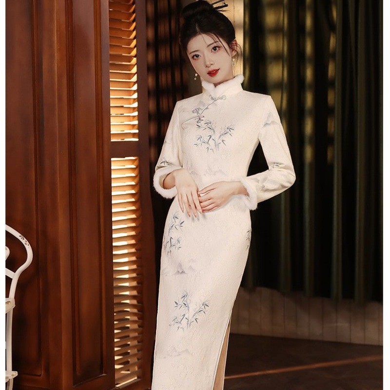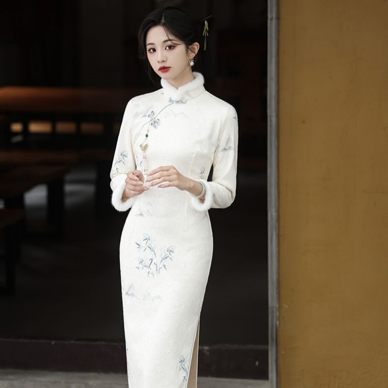 新中式改良旗袍新款连衣裙女长袖冬季加绒冬天长款气质女装秋冬款